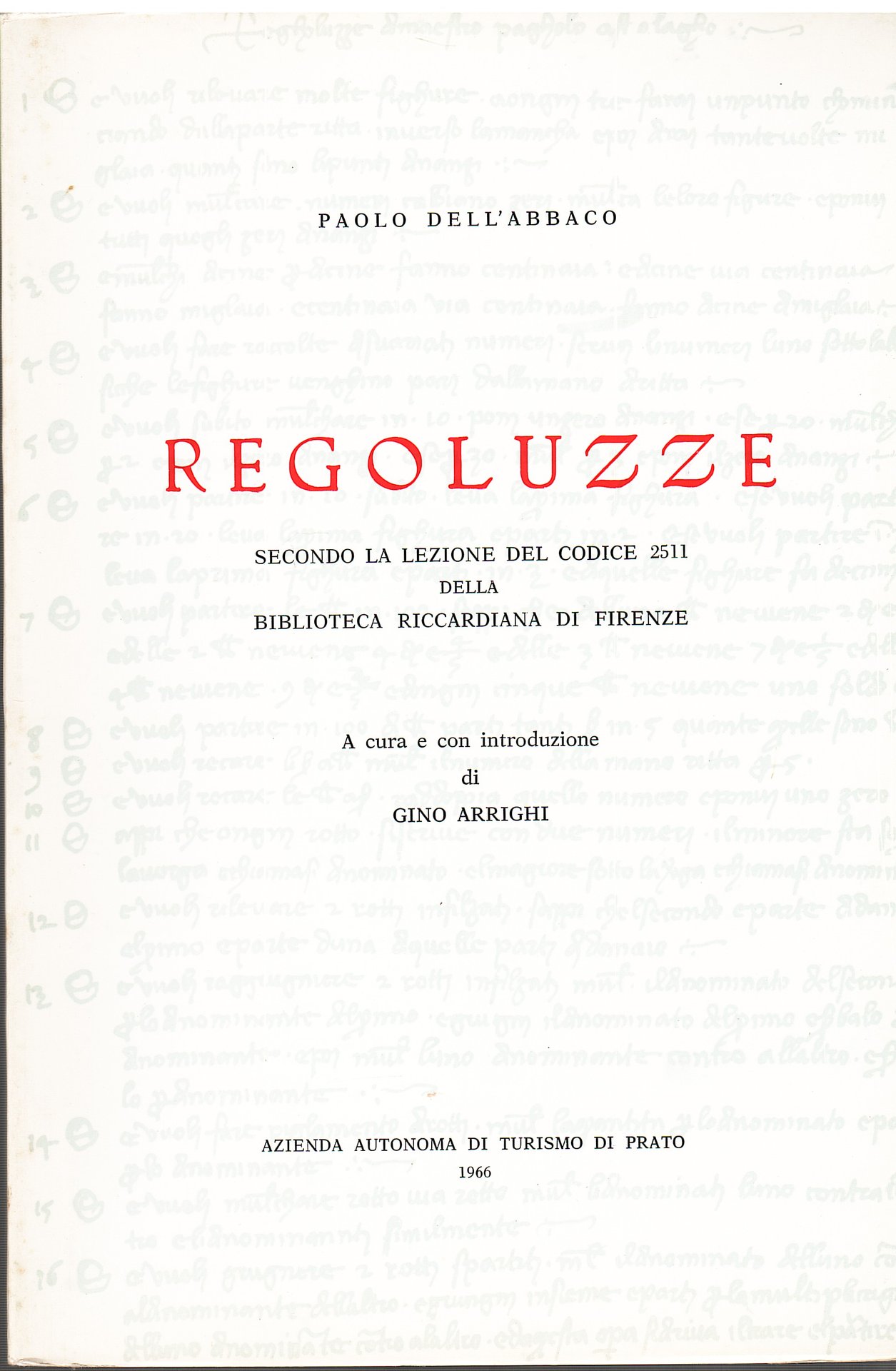 Regoluzze secondo la lezione del Codice 2511 della Biblioteca Riccardiana di Firenze