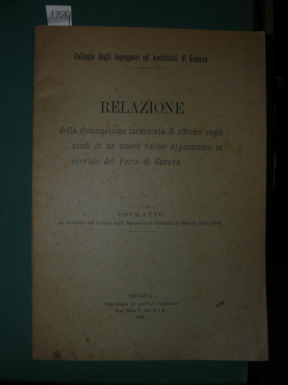 Relazione della commissione incaricata di riferire sugli studi di un nuovo valico appenninico in servizio del porto di Genova. Estratto dal bollettino del Collegio degli ingegneri ed architetti di Genova