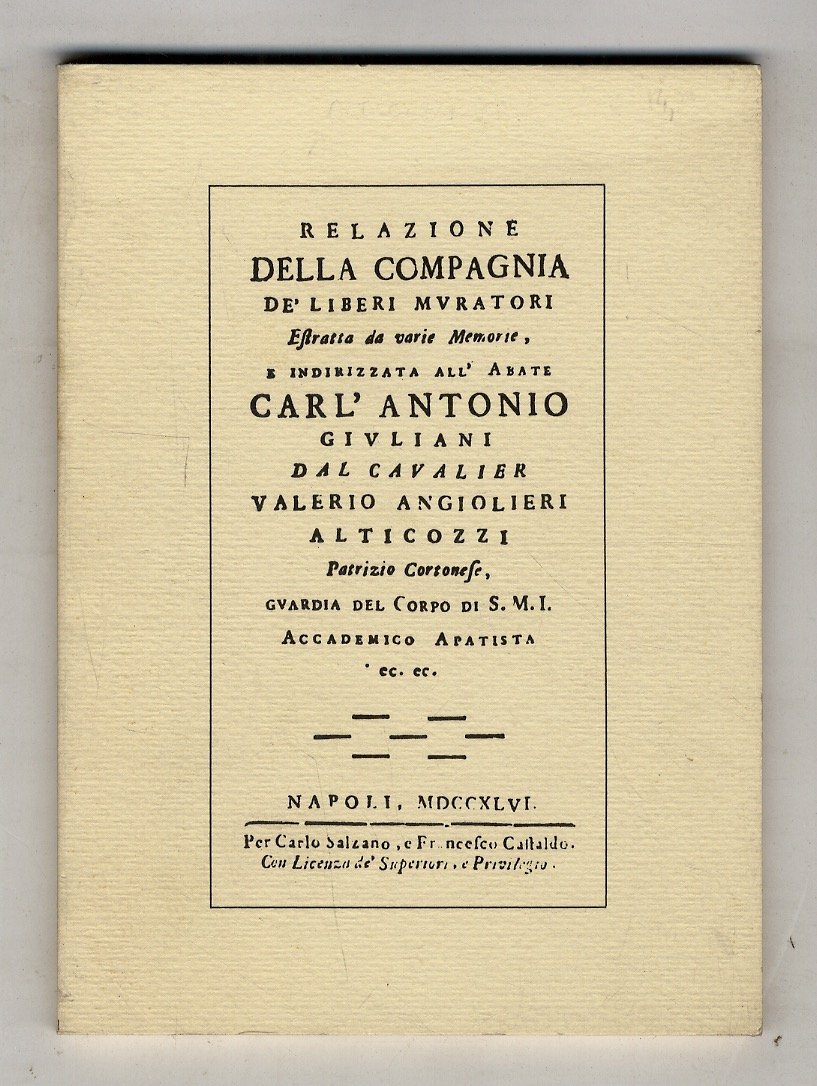 Relazione della Compagnia de' Liberi Muratori estratta da varie memorie e indirizzata all'Abate Carl'Antonio Giuliani (.).