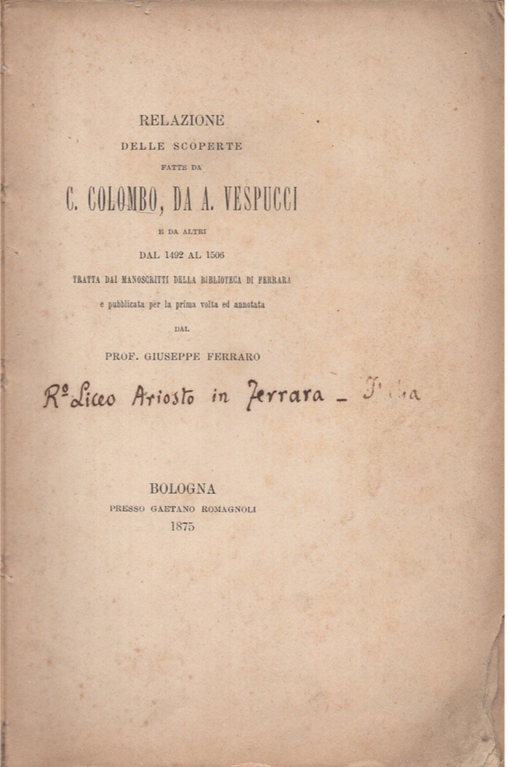 Relazione delle scoperte fatte da C. Colombo e A. Vespucci e da altri dal 1492 al 1500