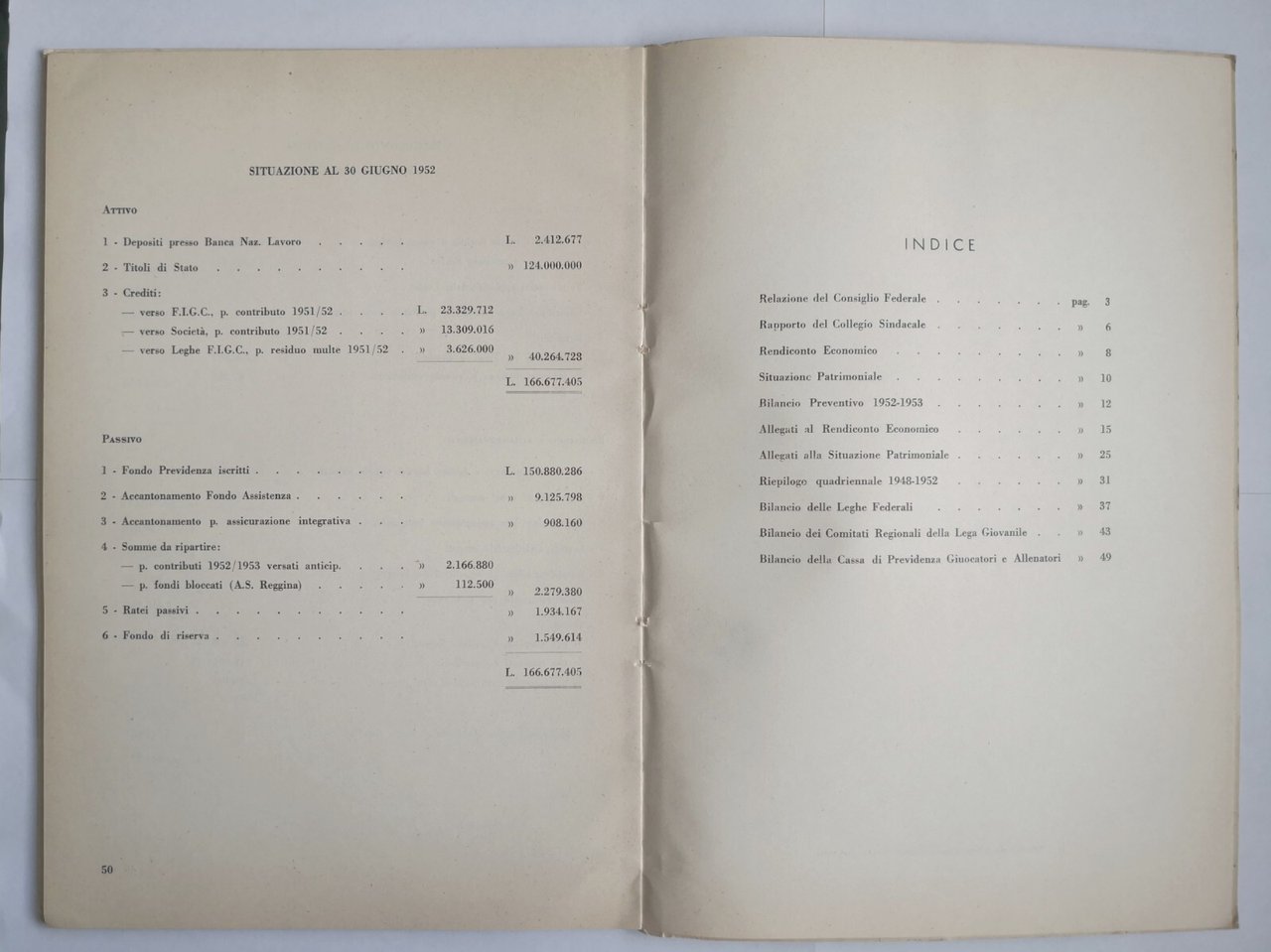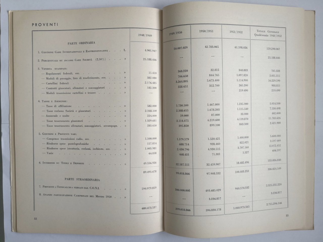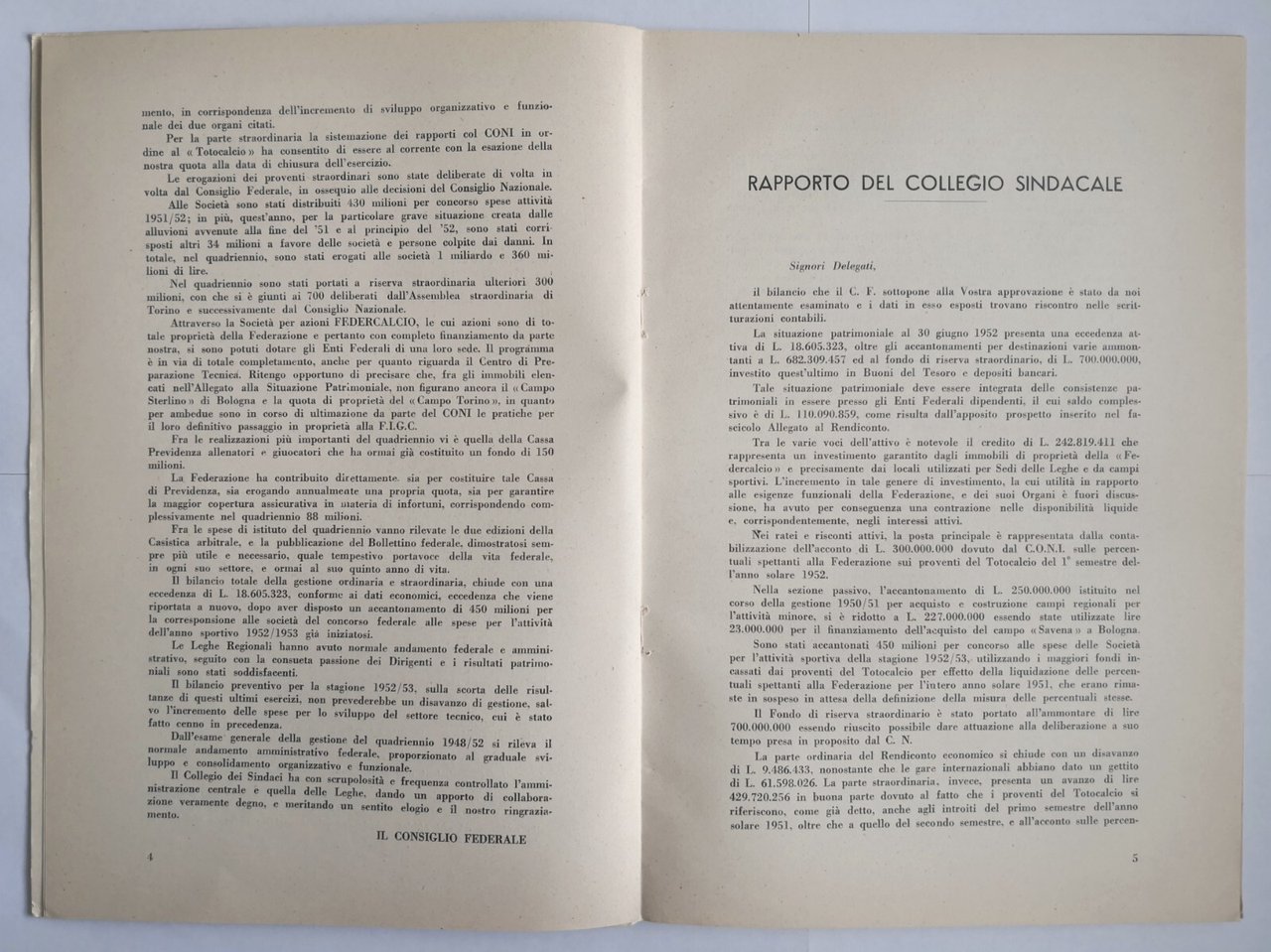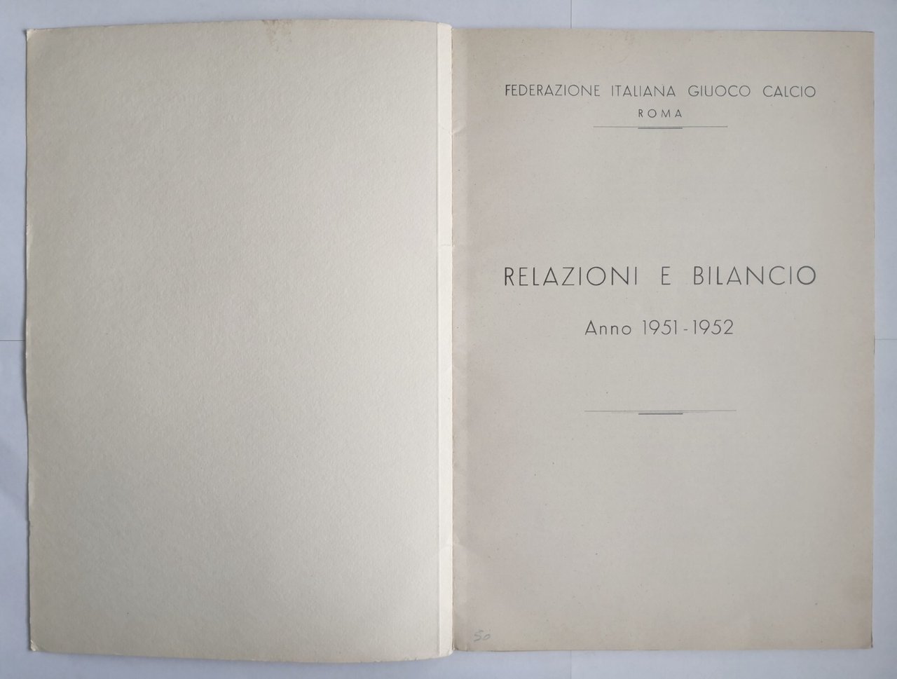 RELAZIONI E BILANCIO ANNO 1951 1952 Federazione Italiana Giuoco Calcio FGC libro