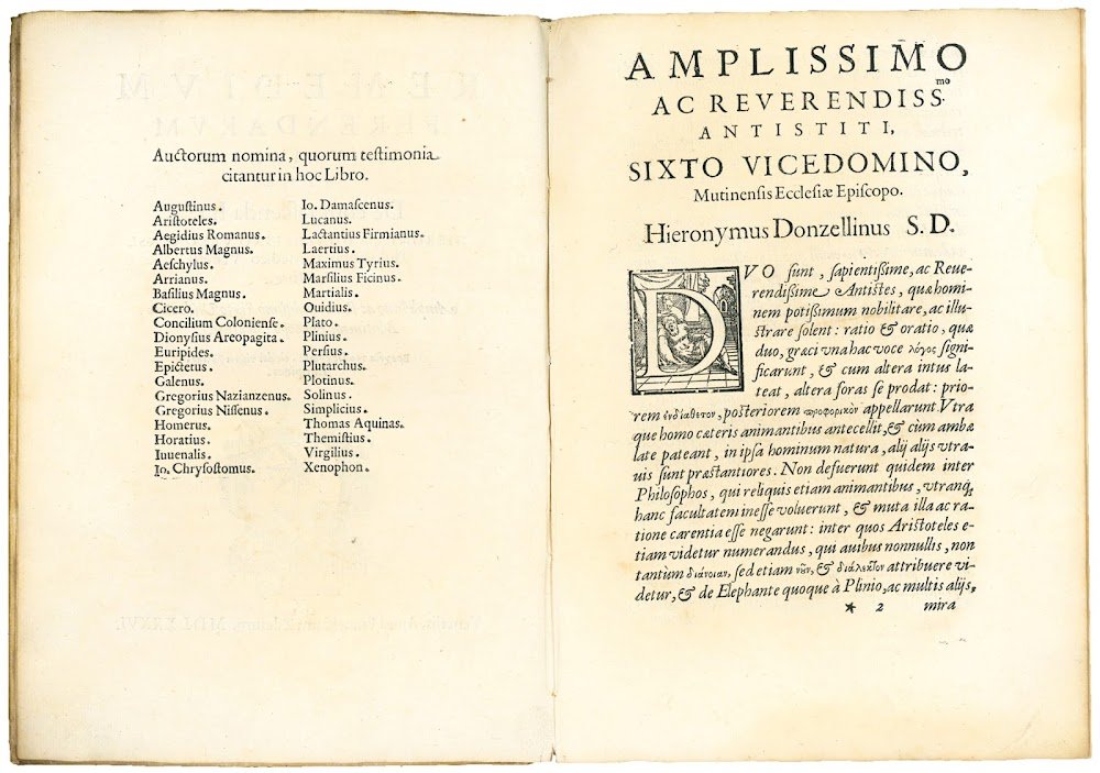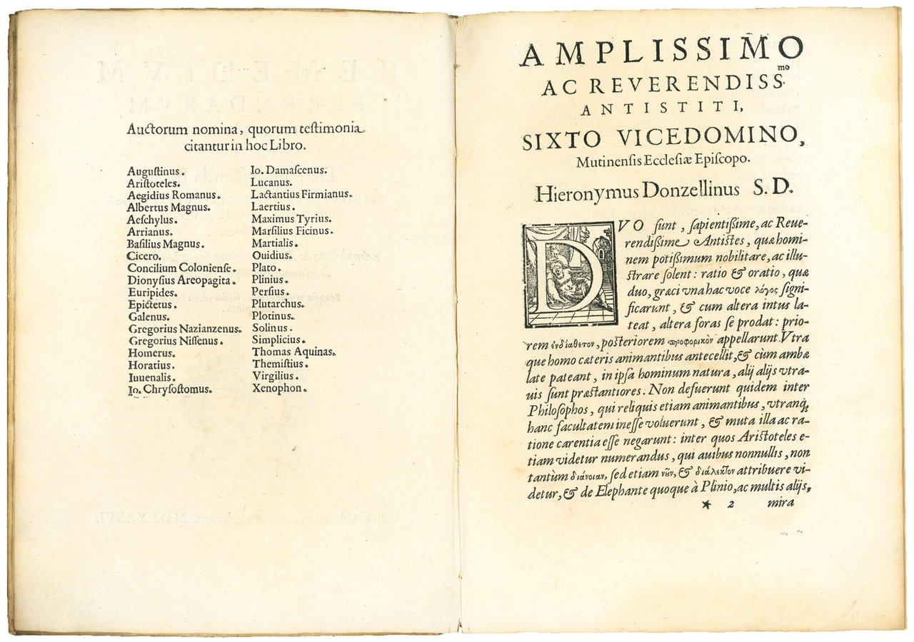 Rara prima edizione (una seconda fu pubblicata ad Altdorf da Nikolaus Knorr nel 1587 e una terza a Leida da Joannes Maire nel 1635) di questo trattato su come sopportare le offese e trovare rimedi efficaci contro l'ira. Quando Donzellini scrisse la sua ultima opera, aveva già affrontato ripetuti interrogatori e torture da parte dell'Inquisizione e nel corso della sua vita aveva anche avuto modo di riflettere sulle molte offese subite a causa delle sue convinzioni religiose e dei suoi molti nemici sia in campo medico che in campo religioso. Sotto la spinta dell'ira, gli esseri umani si comportano come animali. Donzellini afferma che nulla è più dannoso per gli esseri umani della rabbia e della sete di vendetta. Nel suo trattato egli rielaborò i temi del controllo dell'ira e della risposta dell'uomo alle offese, recuperando il pensiero di Aristotele, dei peripatetici, degli stoici e degli epicurei, ma ponendoli al centro come nessuno aveva fatto prima di lui (cfr. C.L. Redmond, Girolamo Donzellino, Medical Science and Protestantism in the Veneto, Stanford, CT, 1984, pp. 198-231).