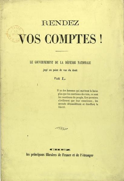 Rendez vos comptes ! - Le gouvernement de la défense nationale jugé au point de vue du droit