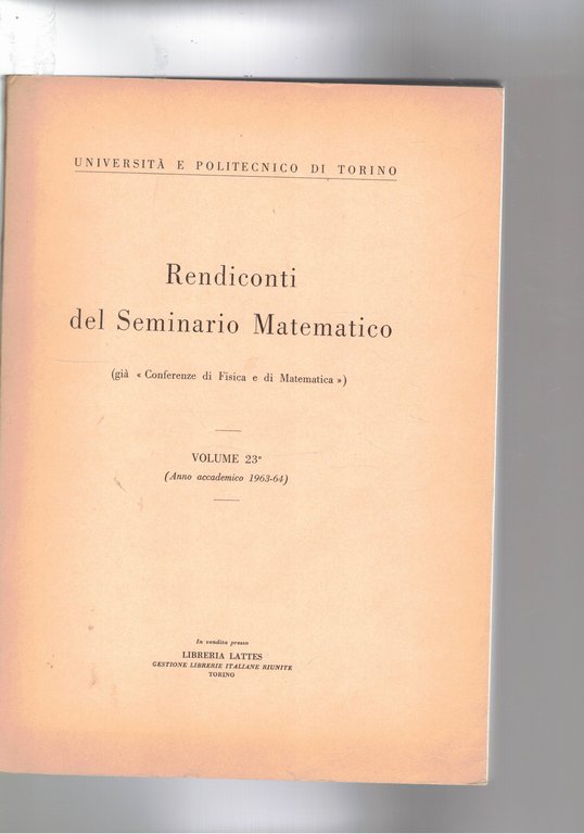 Rendiconti del Seminario matematico (già "conferenze di fisica e di matematica"). Vol. 23° (anni accademici 1963-64). Dell'università del politecnico di Torino.