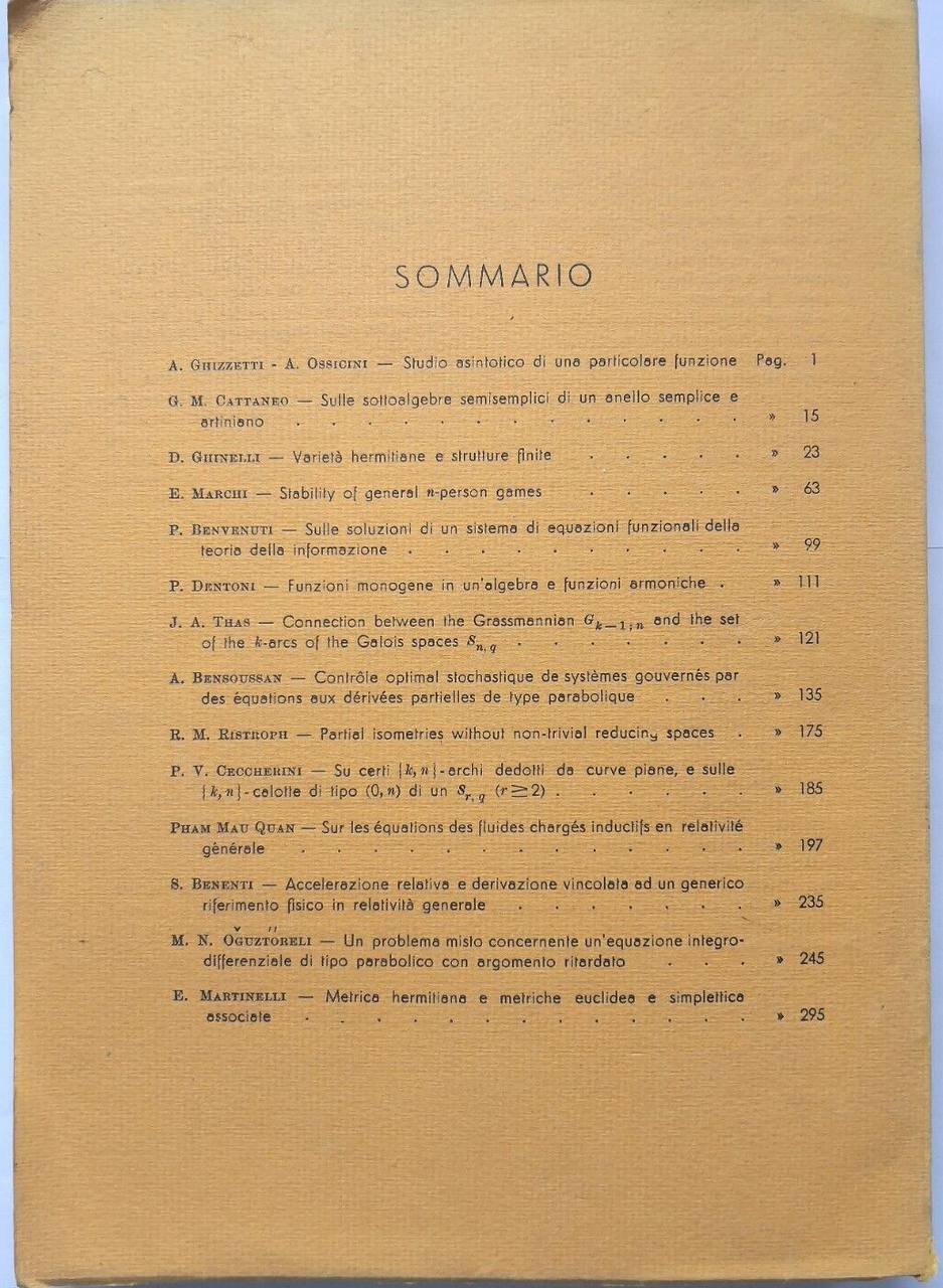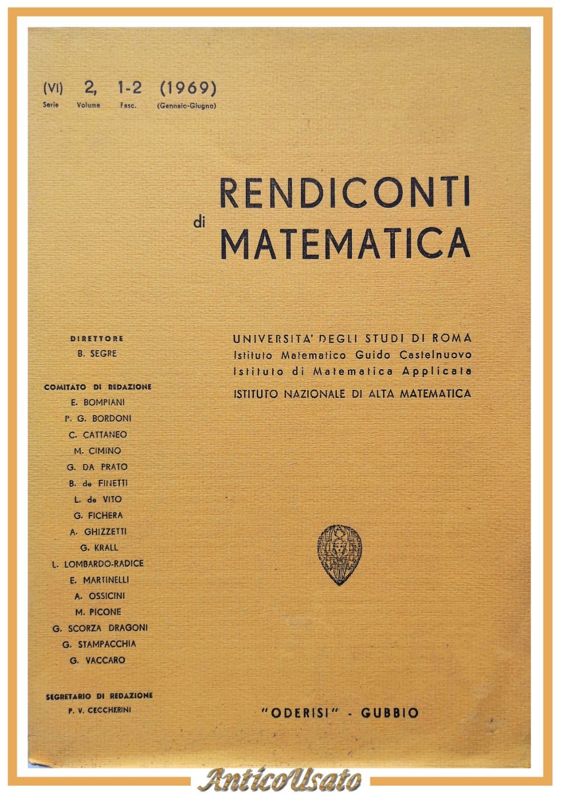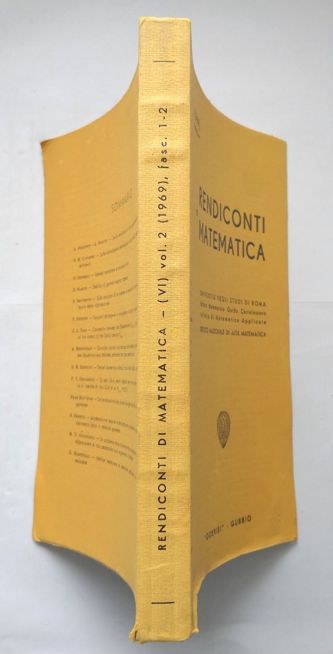 RENDICONTI DI MATEMATICA serie VI volume 2 fascicoli 1 2 1969 Oderisi libro