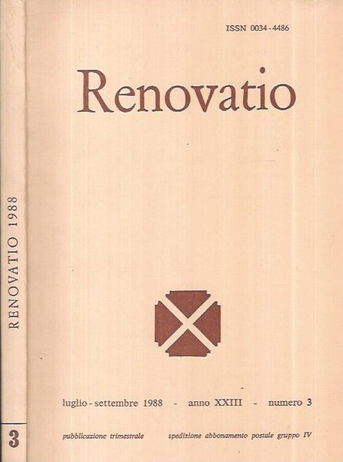 Renovatio, Rivista di Teologia e cultura. Anno XXIII numero 3, in buono stato di conservazione, il volume è integro, chiara la copertina, forti il dorso e la legatura. Le pagine interne ben mantenute. Numero pagine nd.