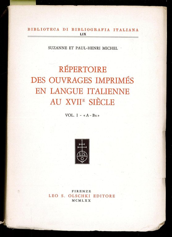 Répertoire des ouvrages imprimés en langua italienne au XVII siècle Vol. I A-Ba