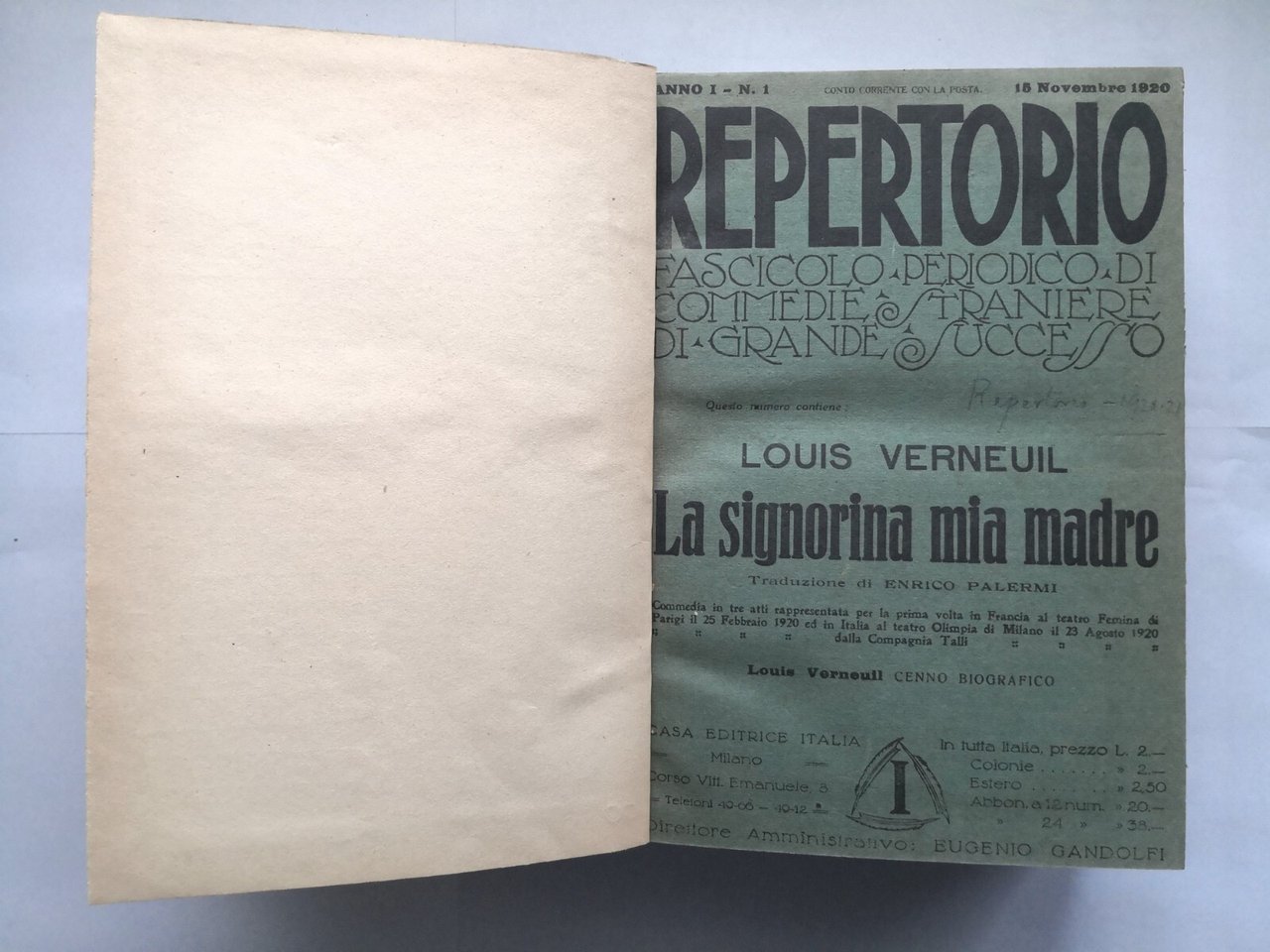 REPERTORIO fascicolo periodico di commedie straniere di grande successo. Anno primo, numeri dal 1 al 12.