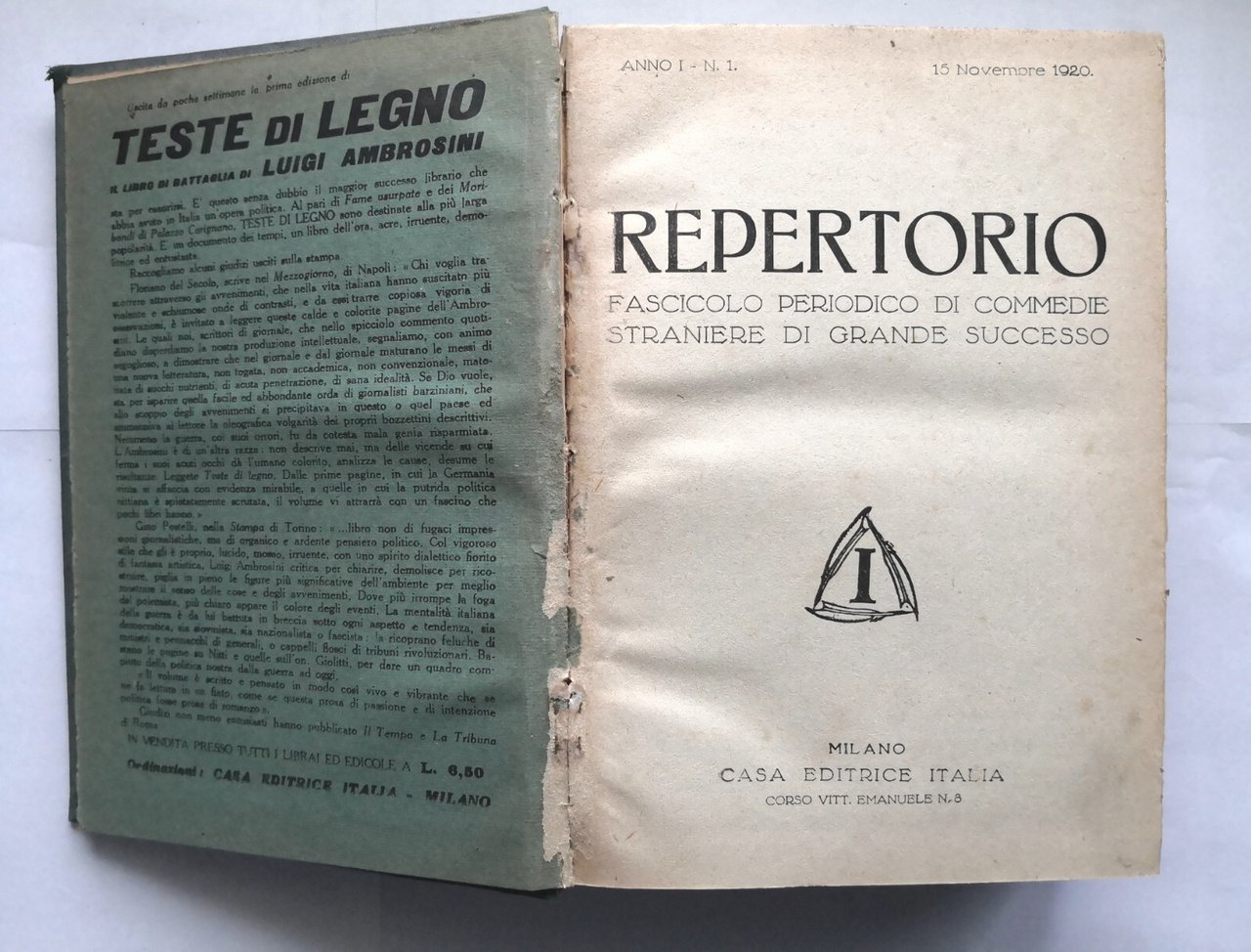 REPERTORIO anno 1 primi 12 numeri rivista di commedie straniere teatro giornale