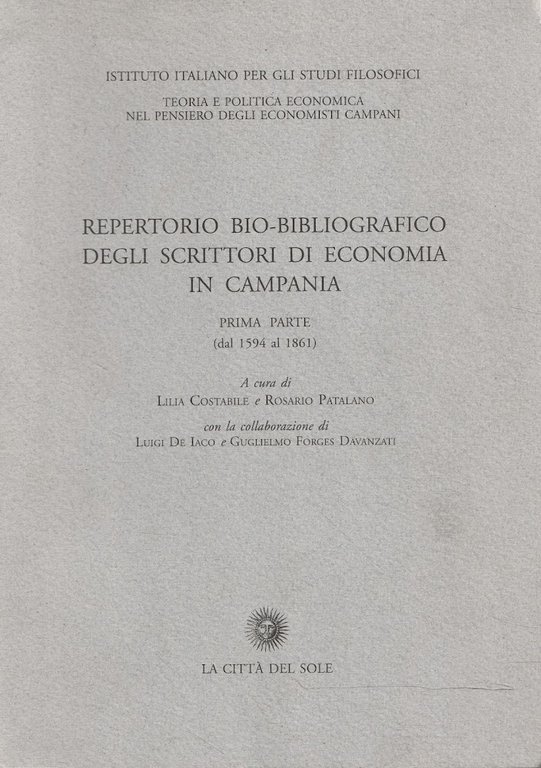 Repertorio bio-bibliografico degli scrittori di economia in Campania. Prima parte (dal 1594 al 1861)