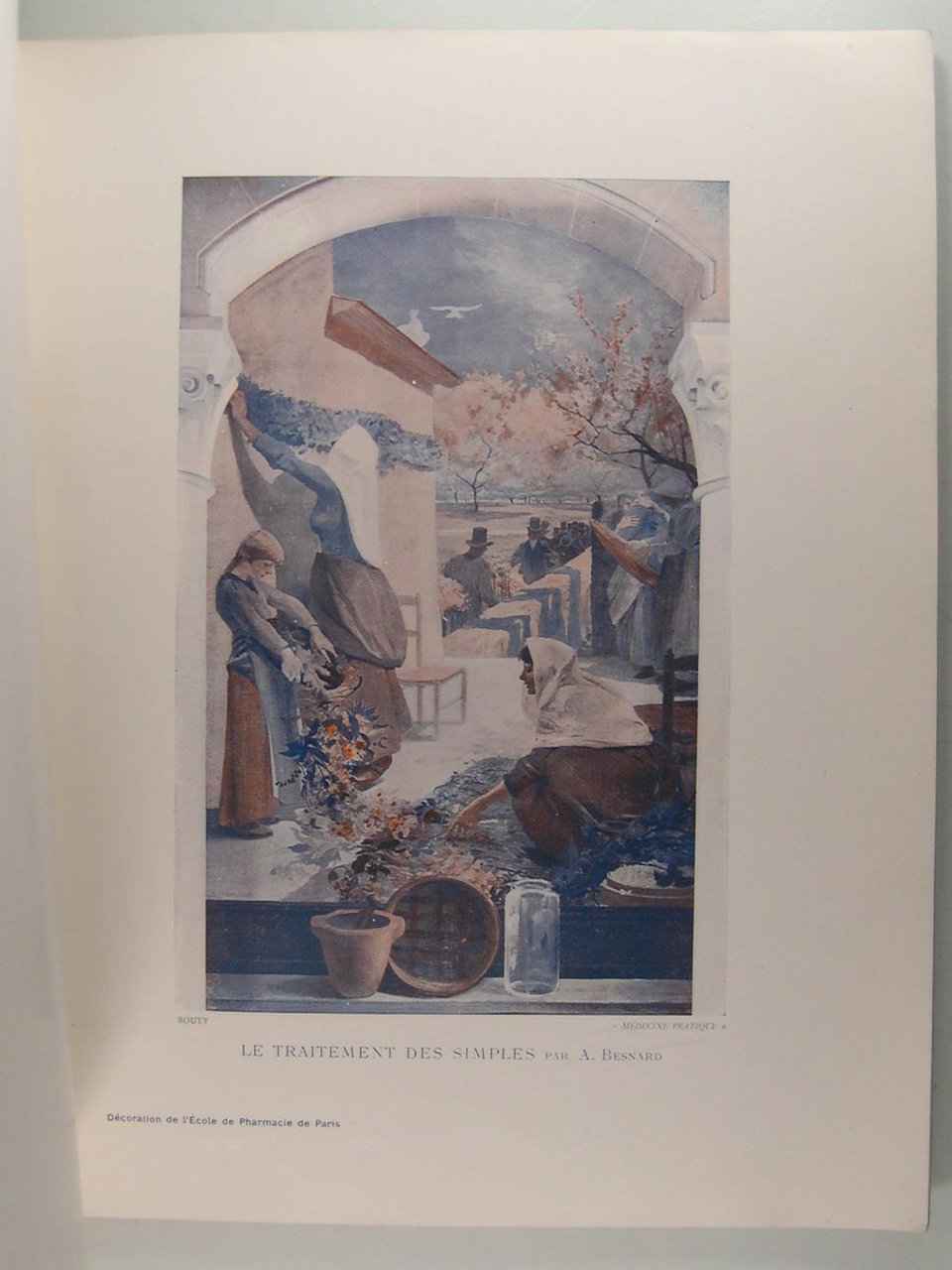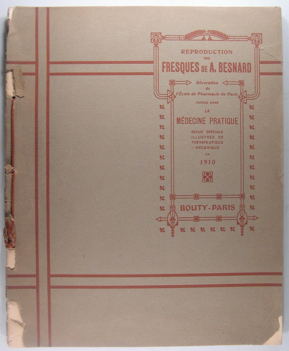 Edition Bouty, Paris, 1910. In/4 (27 x 22 cm) broché, couverture imprimée en rouge, feuillets liés par un cordon de soie, 12 planches couleurs en photogravure sur papier couché, 1 feuillet de texte. Manque de papier sur la couverture. Décoration de l'école de Pharmacie de Paris "Albert Besnard, né le 2 juin 1849 à Paris, où il est mort le 4 décembre 1934, est un peintre et graveur français."