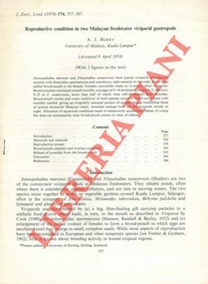 Reproductive condition in two malayan freshwater viviparid gastropods.