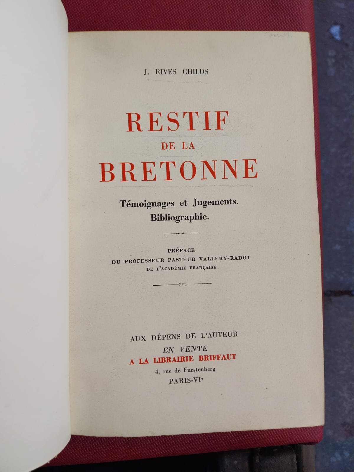 Librairie Briffaut, chez l'auteur, 1949