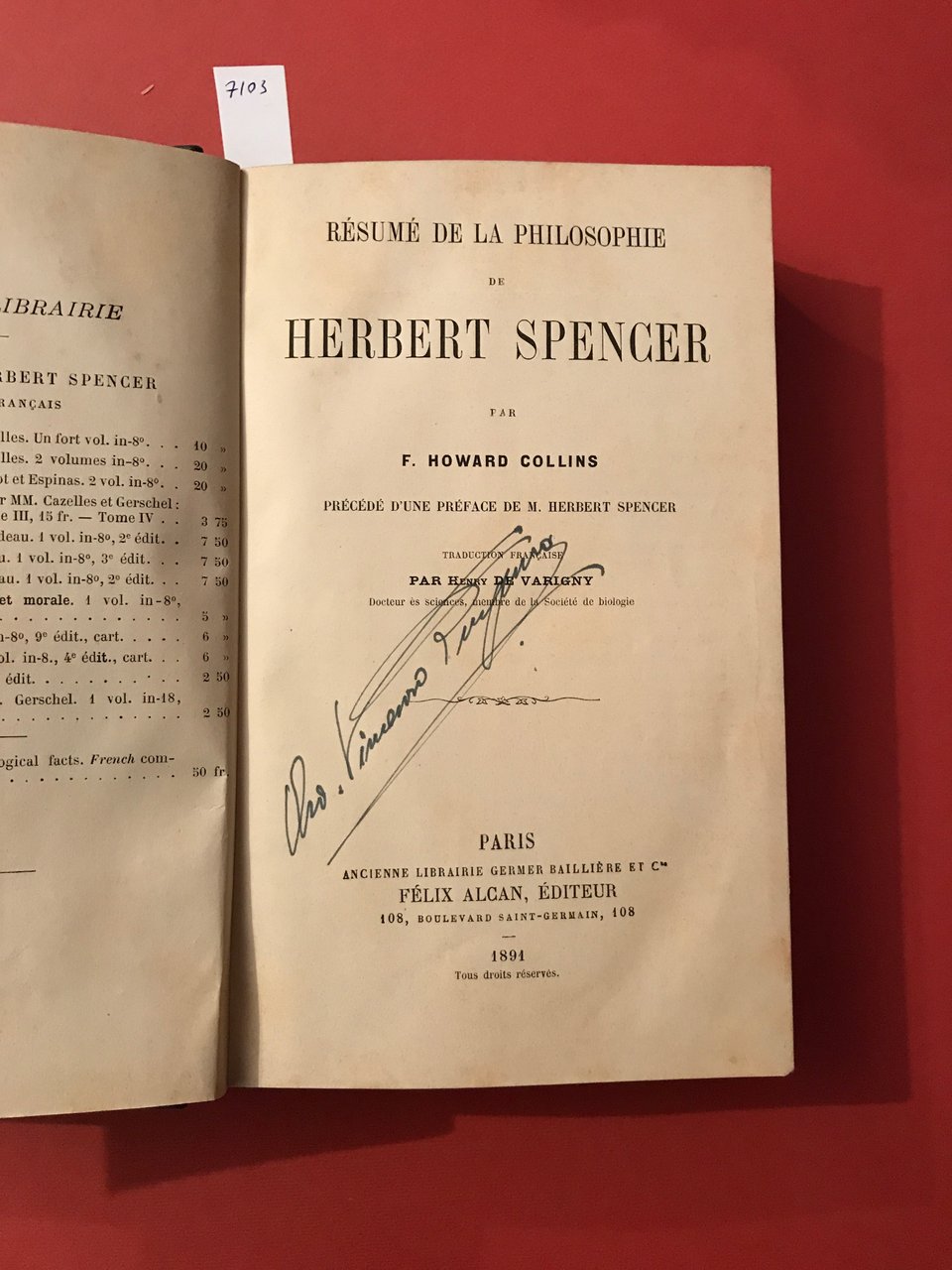 Resumé de la philosophie de Herbert Spencer par F. Howard Collins precedé d'une preface de M. Herbert Spencer. Traduction francaise par Henry De Varigny.