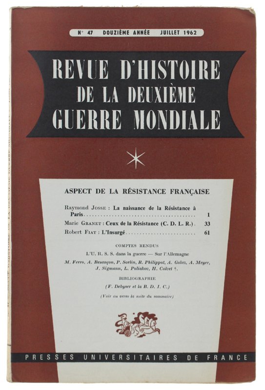 REVUE D'HISTOIRE DE LA DEUXIÈME GUERRE MONDIALE - N. 47 - 1962