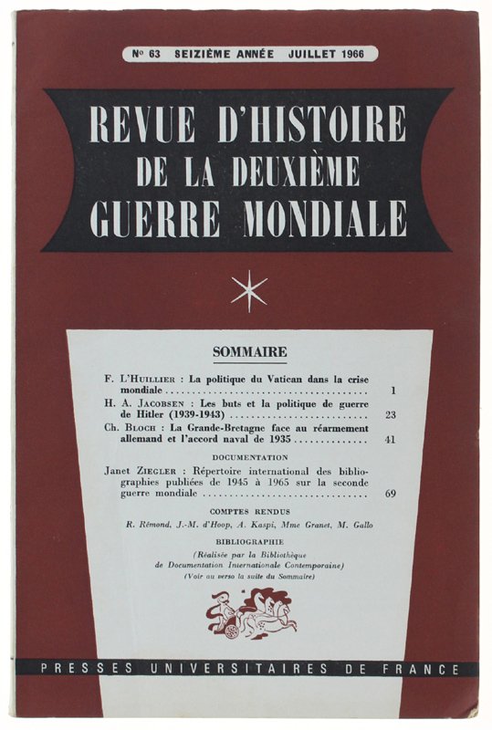 REVUE D'HISTOIRE DE LA DEUXIÈME GUERRE MONDIALE - N. 63 - 1966