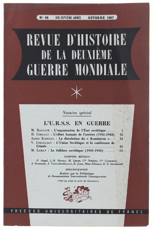 REVUE D'HISTOIRE DE LA DEUXIÈME GUERRE MONDIALE - N. 68 - 1967
