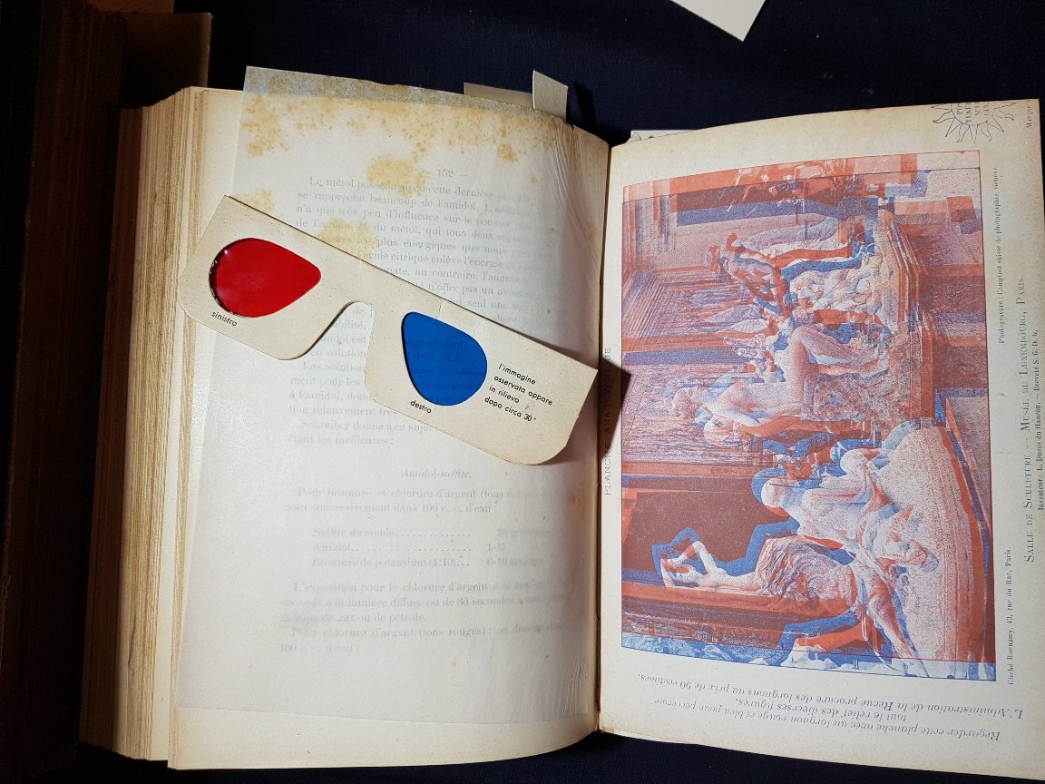 In-4°, pp. X, 428; XII, 384, numerose illustrazioni fotografiche f.t. e nel testo, comprese due 'planche anagliphique' che rappresentano uno dei primi esemplari di stereografia eseguiti con stampa tipografica retinata, conservati all'interno gli occhiali per 'anaglifi neri'. Legatura in tutta tela dell'epoca, titolo in oro su tassello al dorso. Raccolta di due annate di questa celebre rivista fotografica.