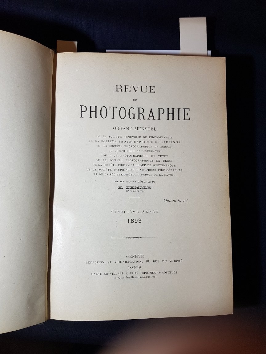 Revue de photographie. Organe mensuel de la societè genevoise de photographie, de la societè photographique de Lausanne, de la societè photographique de Zurich. publieè sous direction de E. Demole. Cinquieme anne 1893 - Sixieme anne 1894