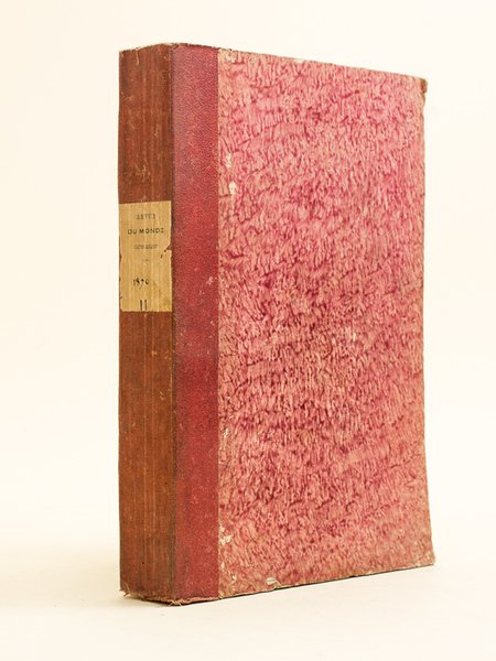 1 vol. in-8 cartonnage demi-percaline rouge, Librairie Victor Palmé, Paris, 1870, 948 pp.[ Contient notamment : ] De la définition de l'infaillibilité pontificale à propos de la lettre de Mgr d'Orléans à Mgr de Malines (Dom Guéranger) - Constantinople et Rome, ou reprise de questions qui ne touchent pas à leur fin - La Russie dans l'Extrême Asie, (suite) annexion du bassin de l'Amour (Léonce de la Rallaye) - Voyage à Aden (Exupère) - L'Exposition religieuse à Rome, (suite) Trésors des basiliques romaines (Barbier de Montault) - Caïn et Kaïn (Romont) - La France sous Philippe Auguste : Les Serfs - La Famille - La Littérature (Léon Gautier) - Les Nationalités en Autriche (Félix Salles) - Les Légendes du bréviaire romain (Montrouzier) - La Liberté de l'Enseignement supérieur (Jacquier) - L'Ecole polytechnique (D'Armentières) - Le Pape Honorius et Mgr Héfélé (Colombier) - Pie IX et les politiques, à propos de l'ouvrage de Saint-Albin - Autorité de l'Eglise dispersée (Montrouzier) - Jean-Baptiste Rousseau (Antonin de Latour) Etat très satisfaisant (ancien cachet d'institution religieuse, étiquette de cote en garde, bon état par ailleurs)