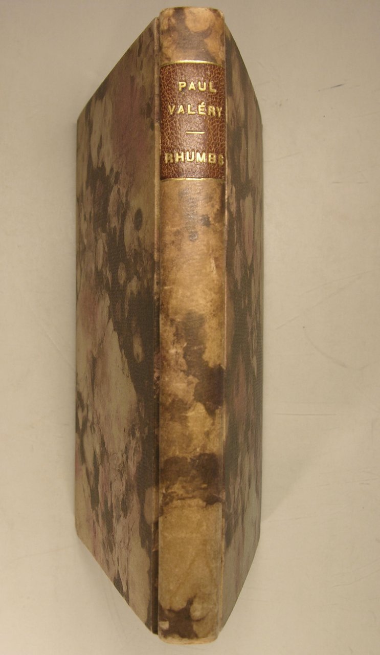 Le Divan, Paris, 1926. Petit in/8 (18 x 13 cm), cartonnage à la bradel pièce de titre sur le dos, couvertures et dos conservés, 158 pages. illustrées de petites vignettes reproduisant des dessins de L. de Vinci. Exemplaire numéroté sur Alfa bouffant N° 0158. Reliure signée M.C.A.D. Paul Valéry (1871-1945) Critique, Essayiste, Poète