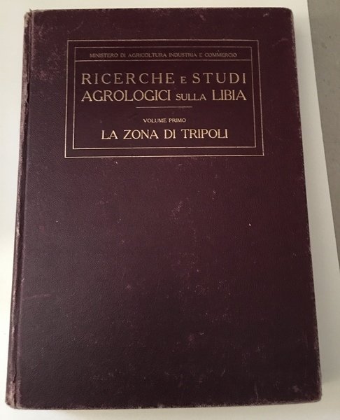 Ricerche e studi agrologici sulla Libia . La zona di Tripoli. volume primo.