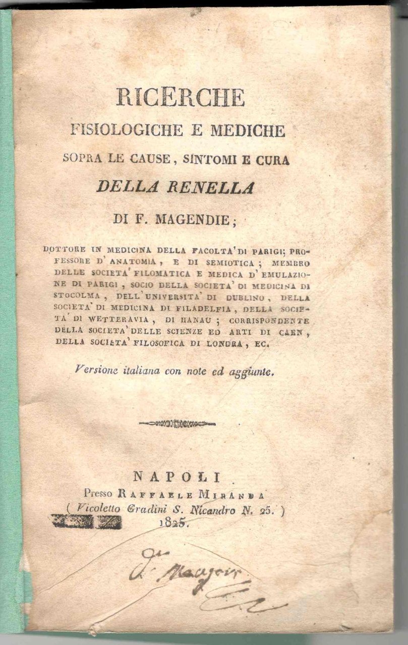 Ricerche fisiologiche e mediche sopra le cause, sintomi e cura della renella | Libri antichi e moderni | Magendie, F.