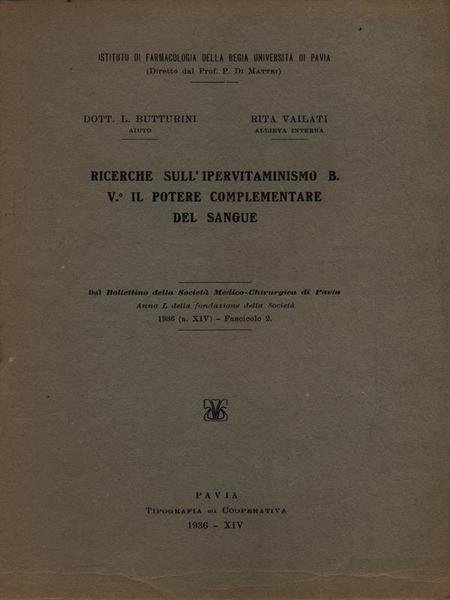 Ricerche sull'ipervitaminismo B. V il potere complementare del sangue - Estratto