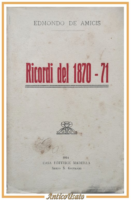 RICORDI DEL 1870 1871 di Edmondo De Amicis 1914 Madella libro 71