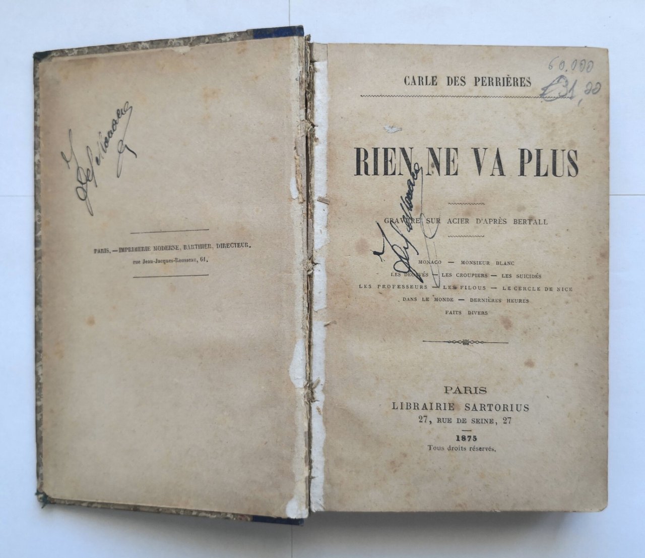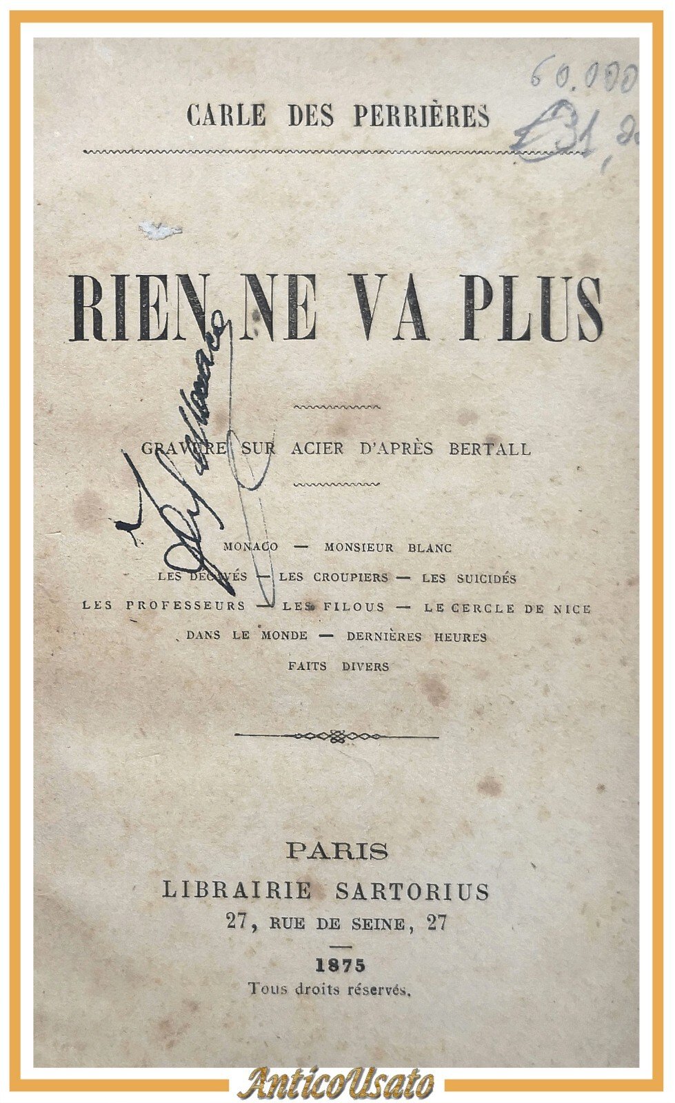 RIEN NE VA PLUS di Carle Des Perrieres 1875 Librairie Sartorius libro antico
