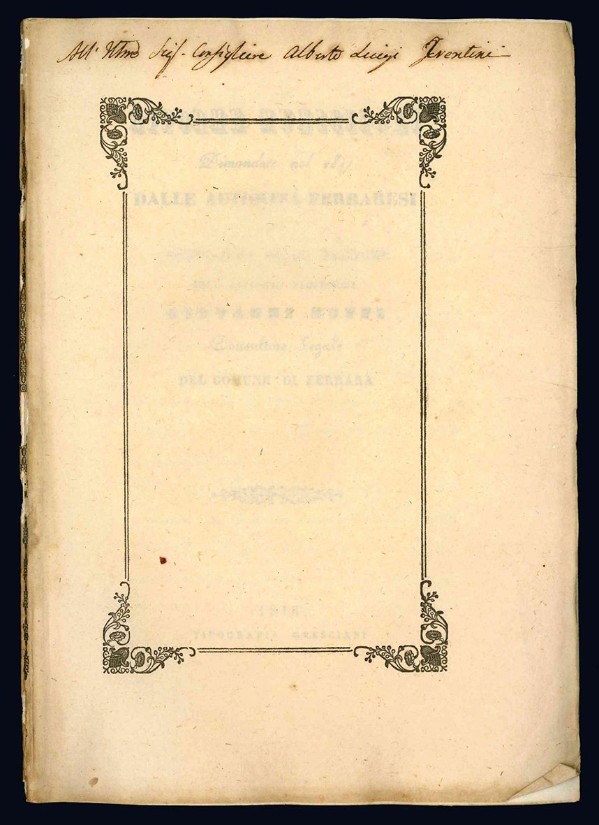 Riforme municipali dimandate nel 1847 dalle autorità ferraresi ed osservazioni sulle medesime dell'avvocato professore Giovanni Zuffi Consultore legale del Comune di Ferrara.