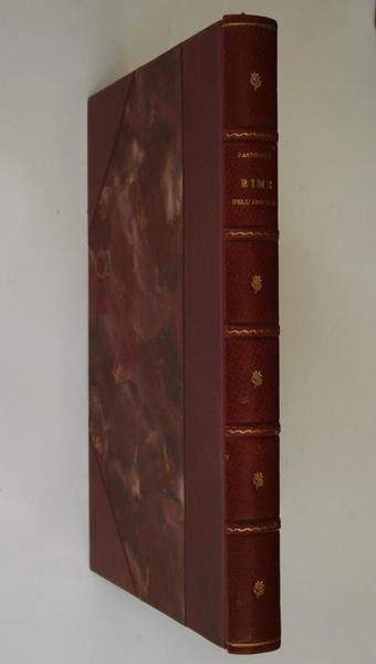 Cm. 22, pp. 199 (3). Solida ed elegante legatura coeva in mezza pelle con punte, dorso a nervi con titoli e fregi in oro. Taglio di testa dorato. Preservata all'interno la bross. orig. (compreso il dorso). Entro custodia in cart. rigido marmorizzato. Perfetta conservazione. Edizione originale.