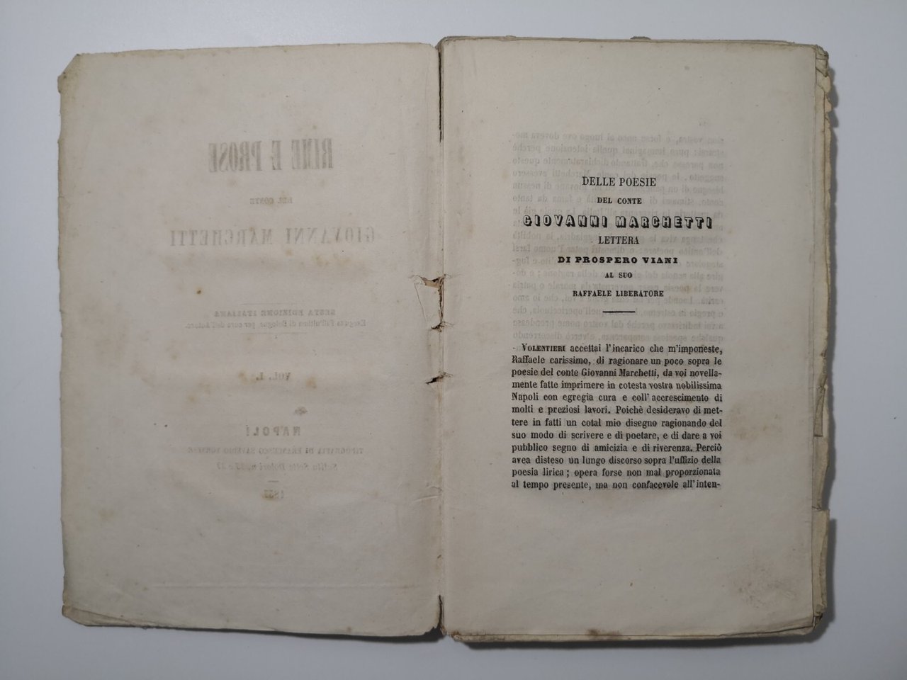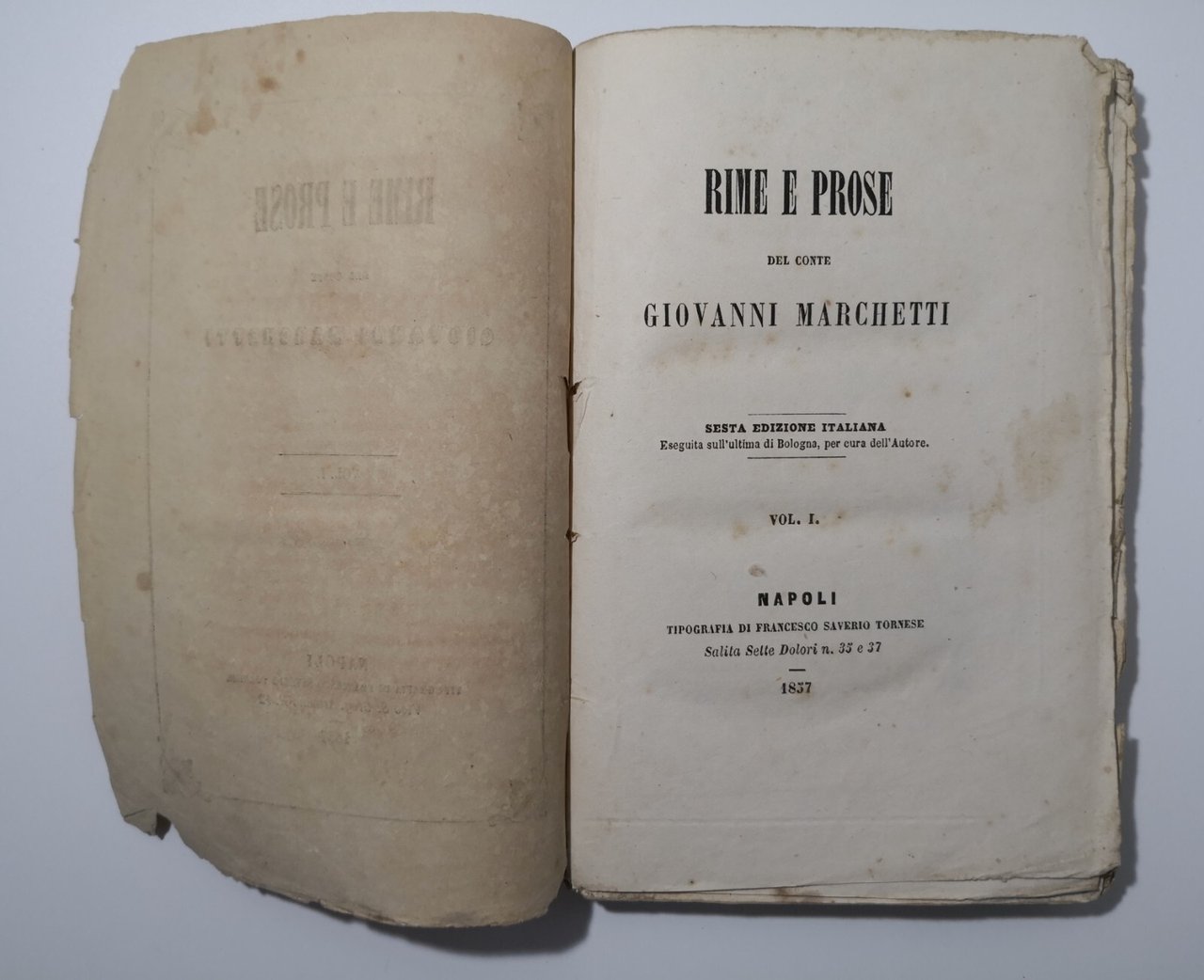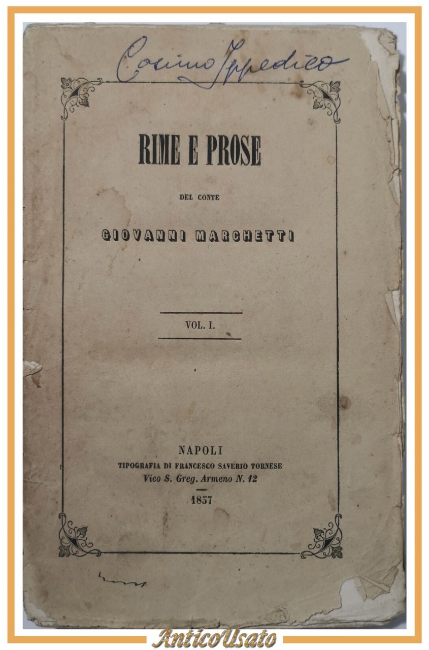 RIME E PROSE volume I di Giovanni Marchetti 1857 Tornese Libro Antico Poesia