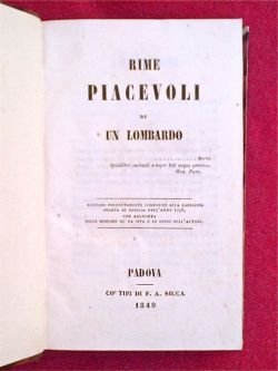 In-16° (cm. 16), solida legatura coeva in m. pelle con titolo e fregi in oro al dorso (abrasioni), piatti marmorizzati e tagli blu; pp. 320 in ottimo stato; edizione perfettamente conforme alla rarissima stampa di Brescia dell'anno 1798, con aggiunta delle memorie sulla vita e le opere dell'autore di Brescia. [LEGATO CON:] Cervelli Domenico. Rime piacevoli di un Toscano. In Como, presso i figli di C. A. Ostinelli, 1834, pp. 202 con qualche fioritura, prima edizione. Esemplare molto buono. (SG5)