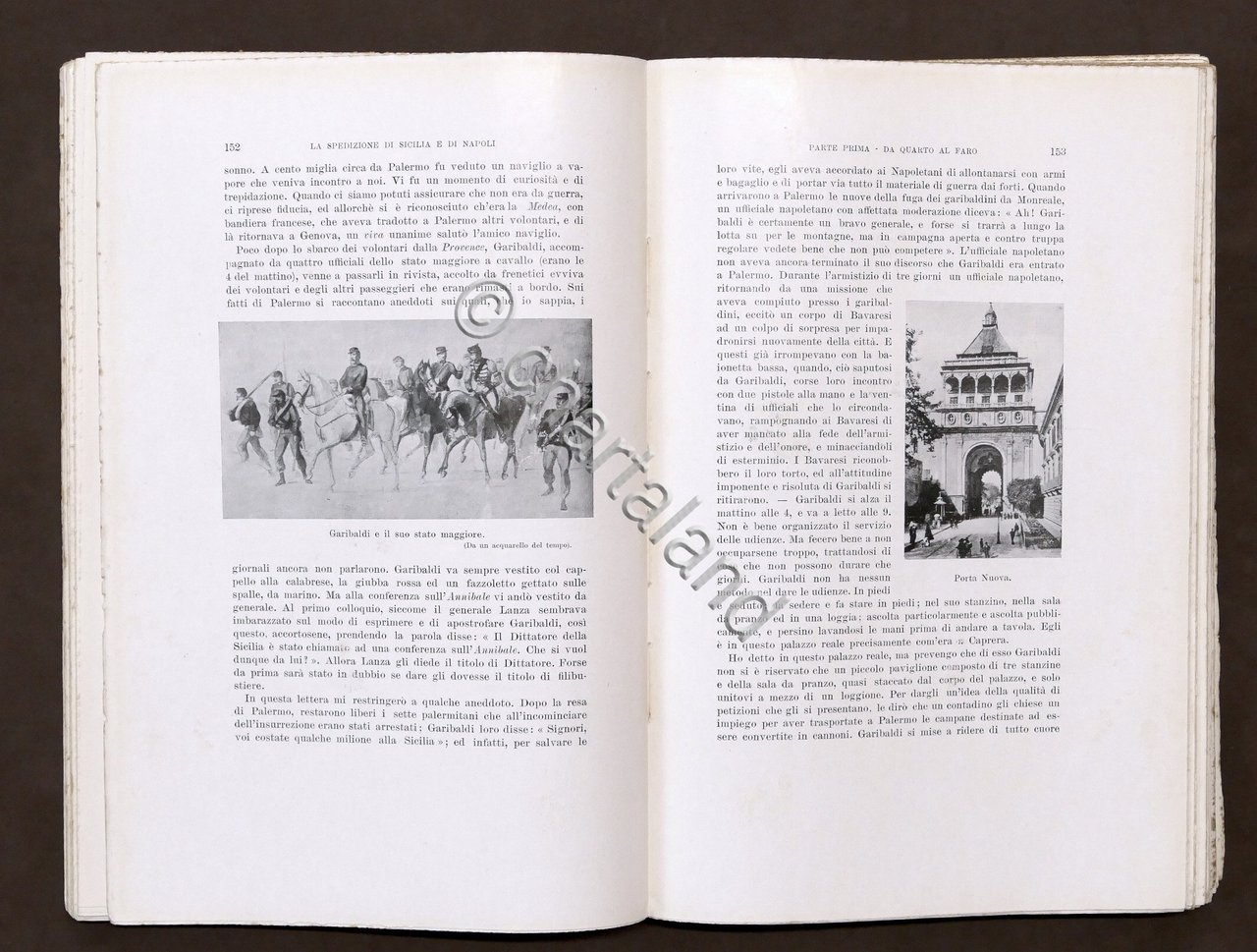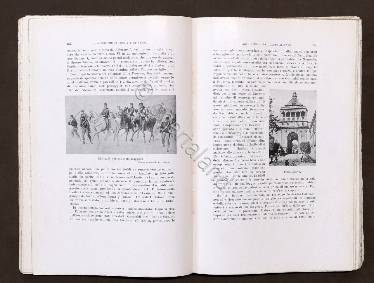 Storia Ottocento - Garibaldi La spedizione garibaldina di Sicilia e Napoli nei proclami, nelle corrispondenze, nei diarii e nelle illustrazioni del tempo a cura di Mario Menghini - Torino, Società Tipografico-Editrice Nazionale, 1^ ed. 1907 - pag. XVI, 466, con numerose illustrazioni. Copertina morbida. Testo in italiano. Condizioni interne molto buone. Piccoli segni del tempo su copertina e dorso con due piccole mancanze alla parte superiore ed inferiore.