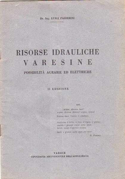Risorse idrauliche varesine possibilità agrarie ed elettriche - II edizione