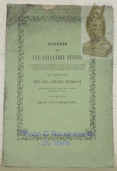 Risponso del Cav. Salvatore Fenicia al quesito del Sig. Giulio Petroni sulle malattie delle viti e degli Olivi. | Libri antichi e moderni |