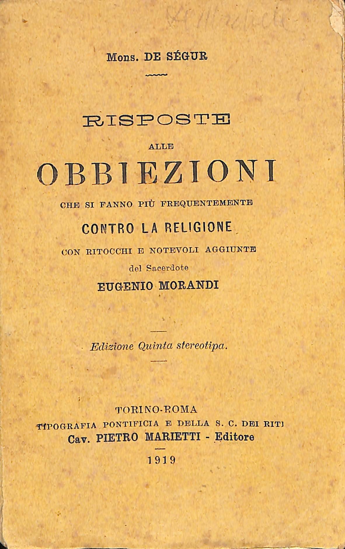 Risposte alle obbiezioni che si fanno più frequentemente contro la religione