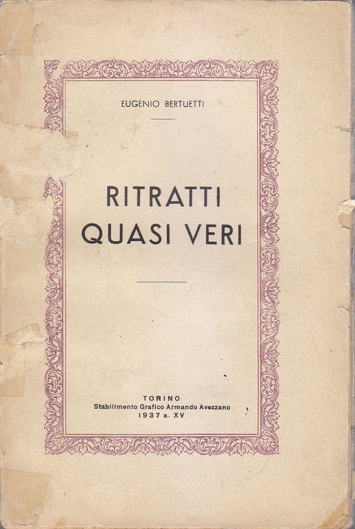 RITRATTI QUASI VERI di Eugenio Bertuetti. Interessante volume con ritratti di Paola Borboni, i De Filippo, .Sergio Tofano, Paolo Monelli ecc. Stabilimento Grafico A. Avezzano 1937