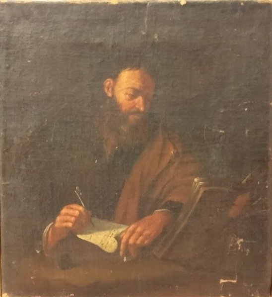 RITRATTO DI SCRIVANO NELL 'ATTO DI TRASCRIVERE UN TESTO ANTICO.
