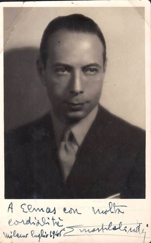 Fotocartolina di cm. 14x9. Ritratto in bianco e nero. Piccolo segno di piegatura nell'angolo superiore. Ernesto CALINDRI (Certaldo, 5 febbraio 1909 - Milano, 9 giugno 1999) è stato un attore italiano di teatro, cinema e televisione. È annoverato fra i grandi, indimenticabili attori del teatro italiano.