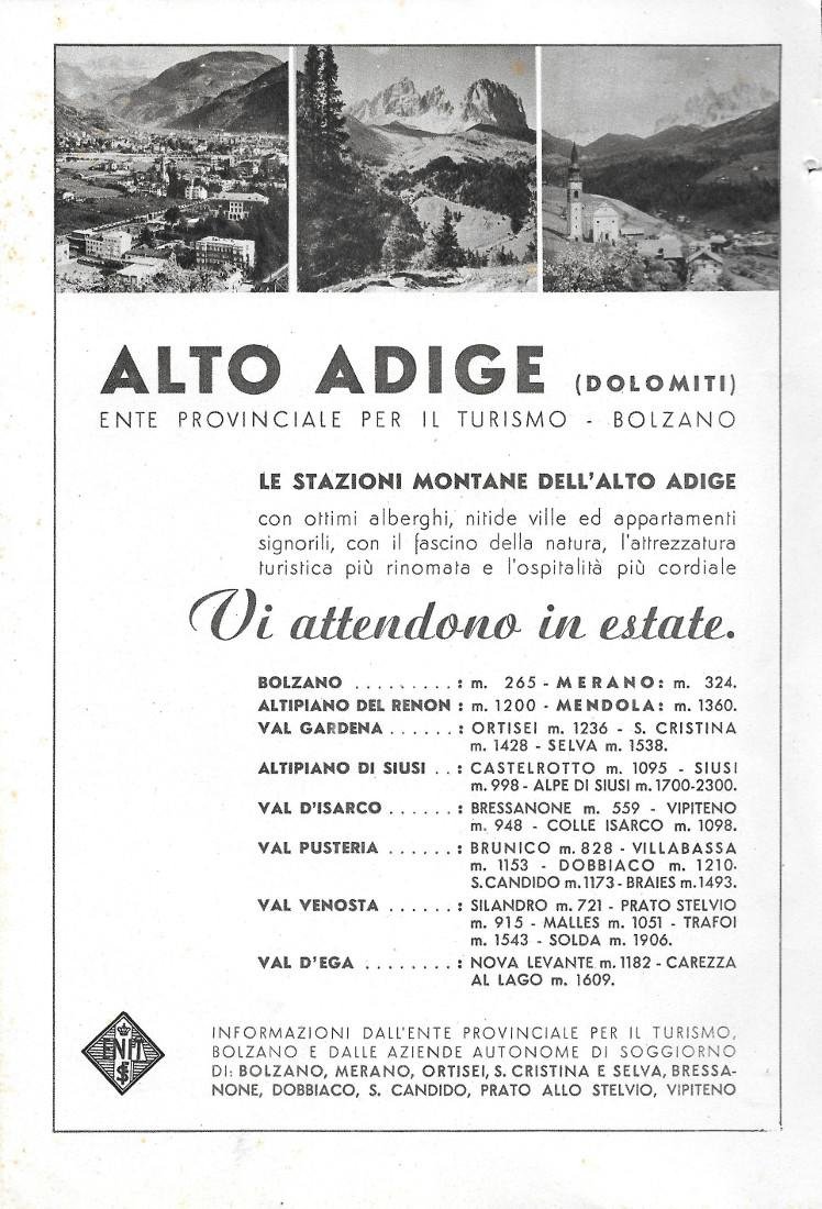 Riviera di Genova / Alto Adige. Advertising 1942 fronte retro