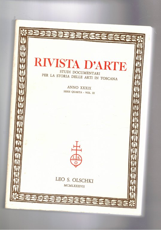 Rivista d'arte. Studi documentari per la storia delle arti in Toscana anno 39° serie quarta vol. III°.