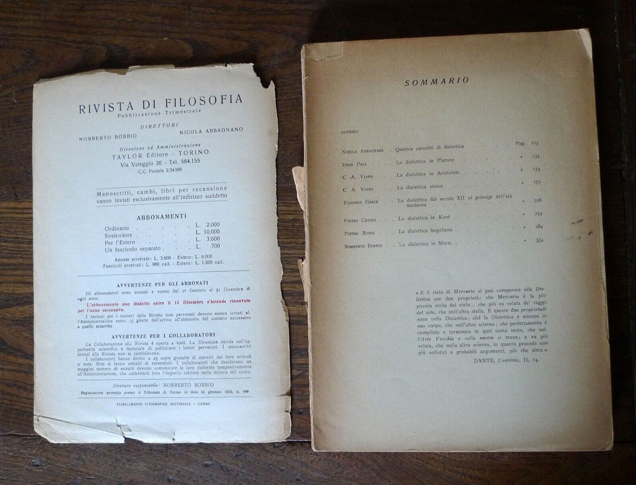 RIVISTA DI FILOSOFIA n.2 1958.STUDI SULLA DIALETTICA[Bobbio,Abbagnano