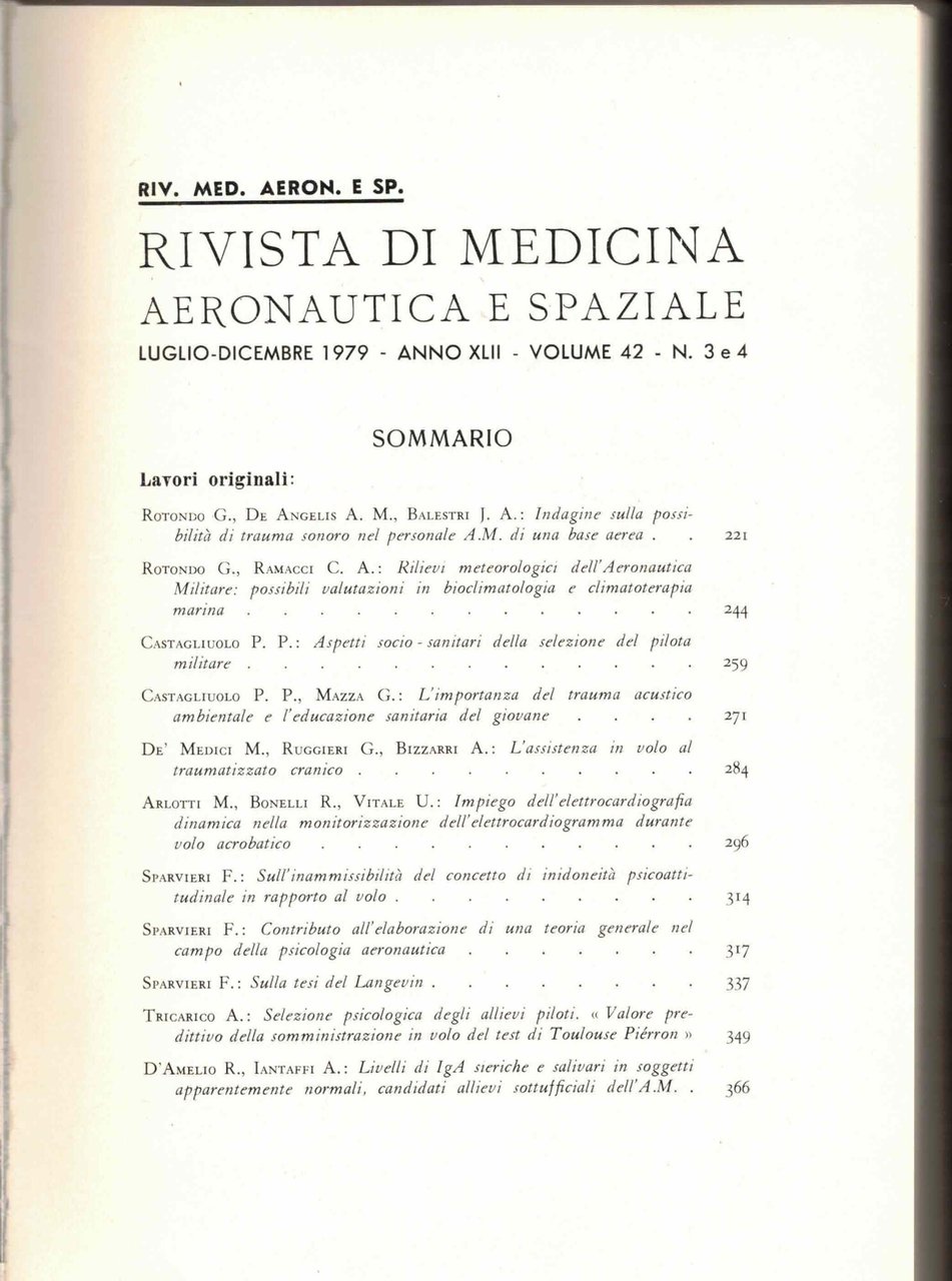 Rivista di medicina aeronautica e spaziale 3-4/luglio-dicembre 1979