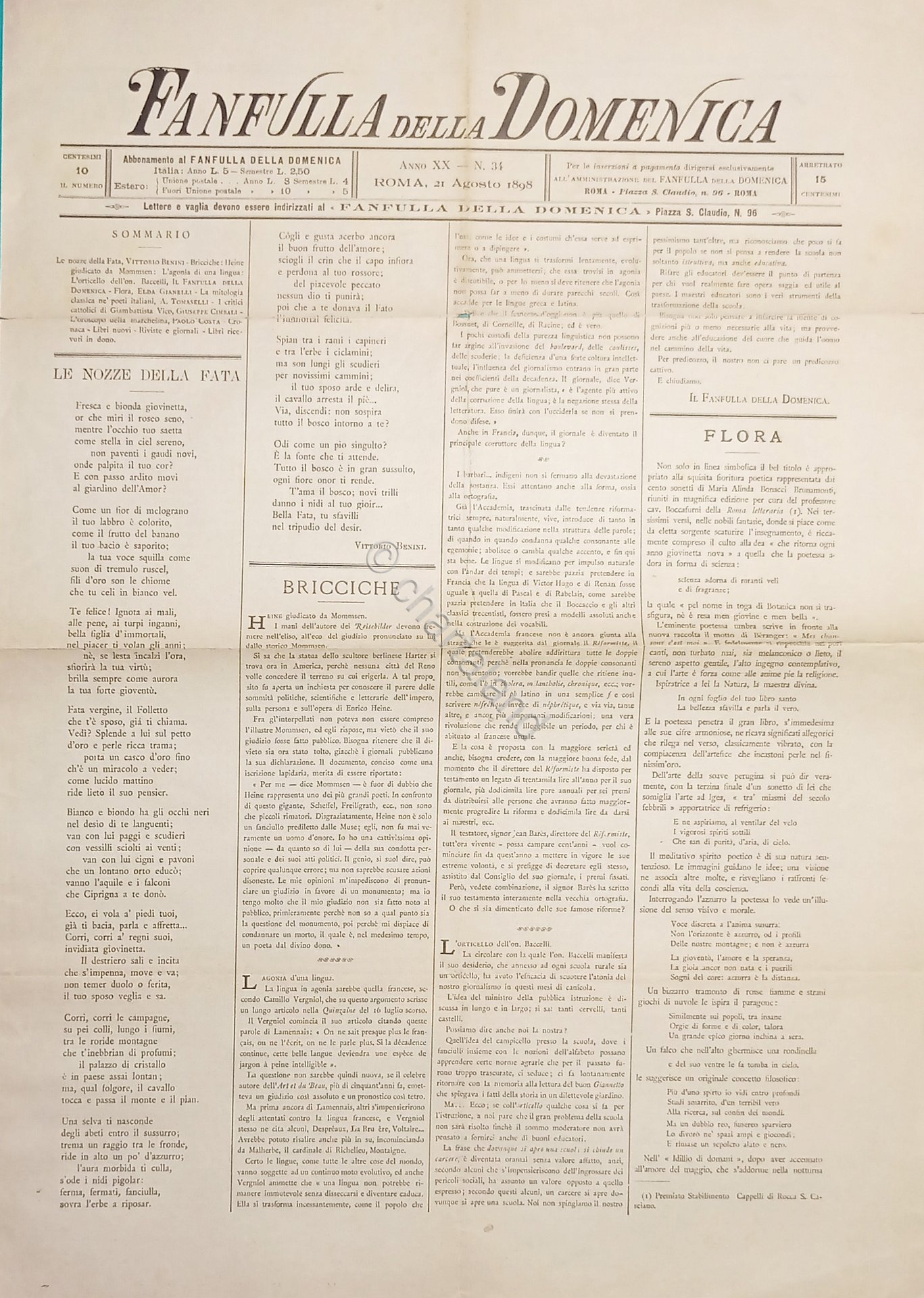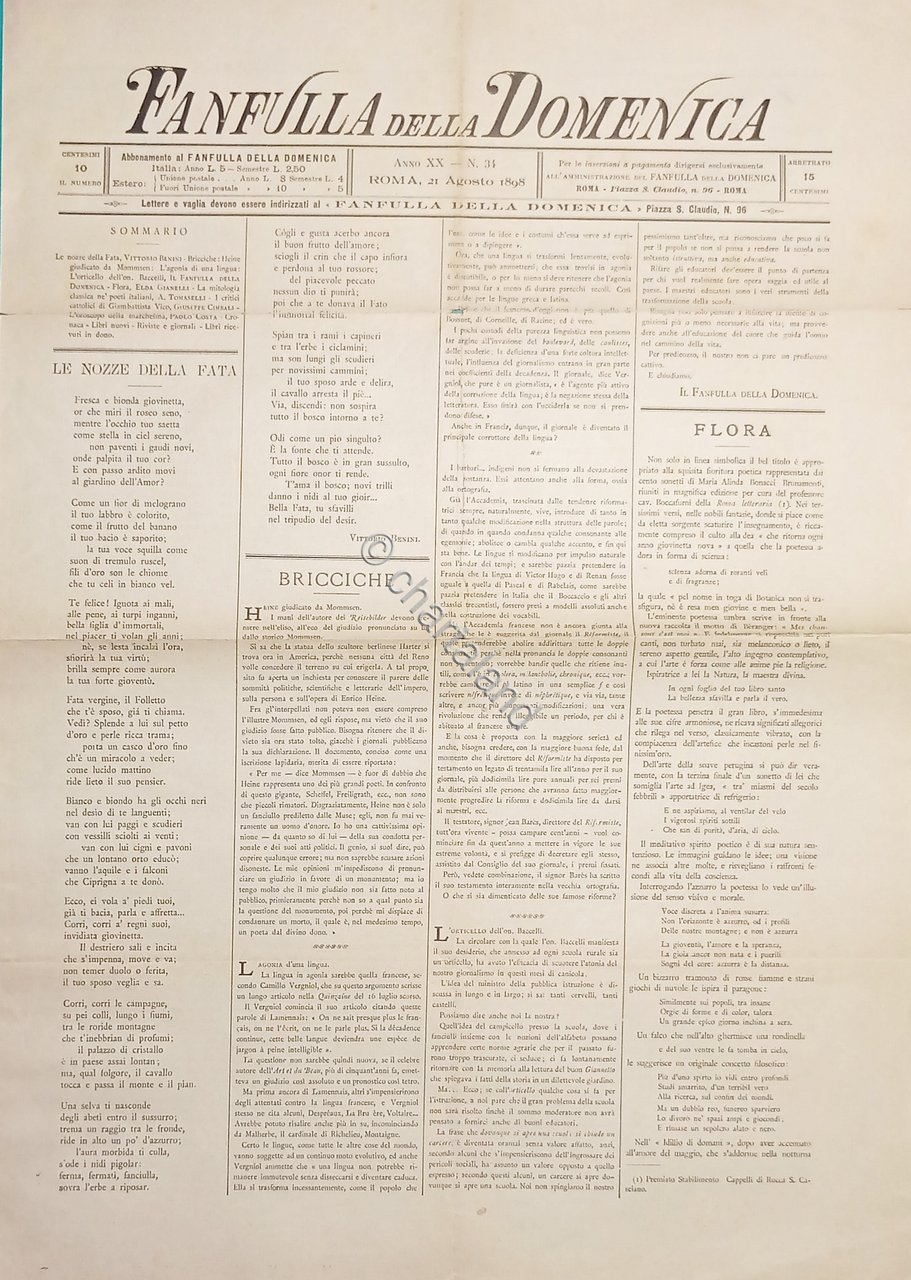 Rivista di politica e letterario - Fanfulla della Domenica N. 34 - 1898 Testo in lingua italiana. Pag. 4 Condizioni molto buone