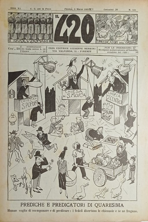Rivista di Satirica Umoristica - IL 420 - Anno XI - N. 535 - 1925 Testo in lingua italiana. Pagine - 8 con illustrazioni. Copertina morbida. Condizioni molto buone.