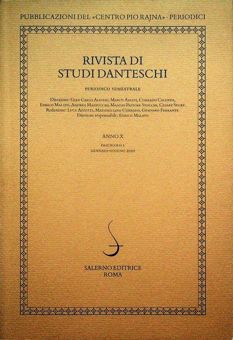 232 p., 24 cm, bross. Condizioni : USATO - Stato : Ottimo. Altre note : CONTIENE:\r\nAutore/i articolo: FURIO BRUGNOLO\r\nTitolo articolo: Saggio di una nuova edizione commentata delle Opere di Dante. 1. “Rime�, L (12), “La dispietata mente�\r\nNel saggio si offre un commento alla canzone “La dispietata mente, che pur mira�. Tale contributo intende esemplificare l’operazione critica svolta per il commento alle “Rime�, attualmente in fase di preparazione nell’ambito del progetto “Nuova Edizione commentata delle Opere di Dante� promosso dal Centro Pio Rajna.\r\nAutore/i articolo: MANLIO PASTORE STOCCHI\r\nTitolo articolo: ‘Io son colui che tenni ambo/ del cor di Federigo’. Lettura del canto XIII del “Inferno�\r\nNel saggio si rintracciano e indagano le influenze che compongono la tessitura del canto XIII dell'�Inferno�. Una delle opere principali alla base di tale passaggio fu L'�Eneide� virgiliana. Gli alberi che racchiudono le anime dei suicidi, le Arpie, i rami sanguinanti sono solo alcuni degli elementi presenti nel canto, che confermano questo dato. Dante, infatti, utilizzò modelli epici nella “Commedia�, su cui operò accorgimenti formali per intonarli al registro stilistico del poema – dice l’autore – sottolineando la trasposizione con opportuni riferimenti formali (p. 38). Figura centrale del canto è Pietro della Vigna, che subì le accuse dei cortigiani di Federico II e fu suicida. L’autore espone e analizza l’ambivalenza che caratterizza tale personaggio, che da un lato è descritto dal poeta con tratti di ‘innocenza’, dall’altro è tenuto a scontare la pena per l’atto compiuto.\r\nAutore/i articolo: MARCO GRIMALDI\r\nTitolo articolo: ‘Per accomodar la rima’. Note sulle ‘siciliane’ della “Commedia�\r\nMuovendo dalla questione circa la validità della teoria delle rime cosiddette ‘siciliane’, si riesaminano tutti i luoghi del poema dantesco in cui sono presenti successioni di tali rime. Nelle moderne edizioni del poema dantesco si accolgono le rime ‘siciliane’ poiché sancite dall’analisi critica di Giorgio Petrocchi, avvallata da Gianfranco Contini. Note di dubbio e dissenso circa tale teoria si rintracciano in Arrigo Castellani nella “Grammatica Storica della lingua italiana� e nell’edizione del poema di Federico Sanguineti.\r\nAutore/i articolo: ANDREA MAZZUCCHI\r\nTitolo articolo: Il commento ai classici, commentare Dante\r\nSi sottolinea l’importanza del corredo esegetico nella storia della ricezione della “Commedia�, e se ne ripercorrono alcune tappe fondamentali. Muovendo da ciò l’autore esamina le più recenti proposte di commenti al poema dantesco, e propone alcune prospettive di ricerca, utili per realizzare un adeguato commento all’opera.\r\nAutore/i articolo: ENRICO MALATO\r\nTitolo articolo: L’incipit della “Vita nuova�\r\nIl saggio ha per oggetto la “Vita nuova�, importante opera autobiografica nella storia della letteratura italiana. Nel quadro tracciato dall’incipit dell’opera si rimarca l’elemento di novità , con cui s’intende sottolineare il cambiamento che coinvolge Dante sia nella sua esperienza di uomo che in quella di poeta. L’analisi procede seguendo il filo narrativo che da quest’opera giovanile condurrà alla ‘somma maturità ’ della “Commedia.\r\nAutore/i articolo: SILVIA FINAZZI\r\nTitolo articolo: La navicella dell’ingegno genesi di un’immagine dantesca\r\nL’autrice indaga i percorsi figurativi che costituiscono il ‘topos’ del mare-testo nella “Commedia�. Dopo aver analizzato la metafora della ‘navicella’, introduttiva del “Purgatorio�, con cui Dante indica il proprio ingegno, si dà rilievo alle metafore nautiche di contenuto metaletterario rilevate da Benvenuto da Imola, il primo tra gli antichi commentatori alla “Commedia� ad aver individuato tali nessi intratestuali, utili per la comprensione del testo dantesco. La ricerca si compone di due macrosezioni, nella prima s’intende dimostrare – dice l’autrice – l’azione dell’immagine della ‘navicula Petri’ sulla ‘navicella’ dell’ingegno (p. 125). Nella seconda parte si osserva la presenza dei ‘topoi’ nelle formule istituzionalizzate dei trattati medievali di retorica.\r\nAutore/i articolo: CARLA MARIA MONTI\r\nTitolo articolo: Uguccione della Faggiola la battaglia di Montecatini e la “Commedia� di Dante\r\nNel contributo si presenta l’edizione critica della lettera, che nel 1315 Uguccione della Faggiola scrisse a due ghibellini genovesi, Gherardo Spinola e Bernabò Doria, in cui descriveva la sconfitta dei guelfi durante la battaglia di Montecatini. L’indagine solleva la questione circa l’ipotesi che Dante potesse alludere a quell’episodio nei versi 106-111 del canto XXXIII del “Purgatorio�. I due destinatari della lettera, infatti, furono personaggi di primo piano nel mondo ghibellino degli anni in cui maturò la stesura dell'�Inferno� e del “Purgatorio�, e le due famiglie ebbero legami con la “Commedia� e con la sua diffusione.\r\nAutore/i articolo: MASSIMILIANO CORRADO\r\nTitolo articolo: Un frammento alle chiose all’“Inferno� di Jacopo Alighieri (VII 67-69) nella tradizione dell’“Ottimo Commento�\r\nNel saggio si rileva come, nell’ambito della più antica tradizione esegetica dantesca, il nome del figlio di Dante sembra comparire soltanto in una glossa sulla Fortuna a “Inferno�, VII 67-69, tratta dalle “Chiose� di Jacopo Alighieri e attribuitagli nel proemio a questo canto, trà dito dal ms. Ashburnham 832 della Bibl. Medicea Laurenziana di Firenze, contenete il testo dell'�Ottimo Commento� alle prime due cantiche del poema.\r\nAutore/i articolo: LUCA AZZETTA\r\nTitolo articolo: Andrea Lancia copista dell’“Ottimo Commento�: il manoscritto New York, Pierpont Morgan Library, M 676\r\nIl manoscritto New York, Pierpont Morgan Library, M 676 è un importante testimon