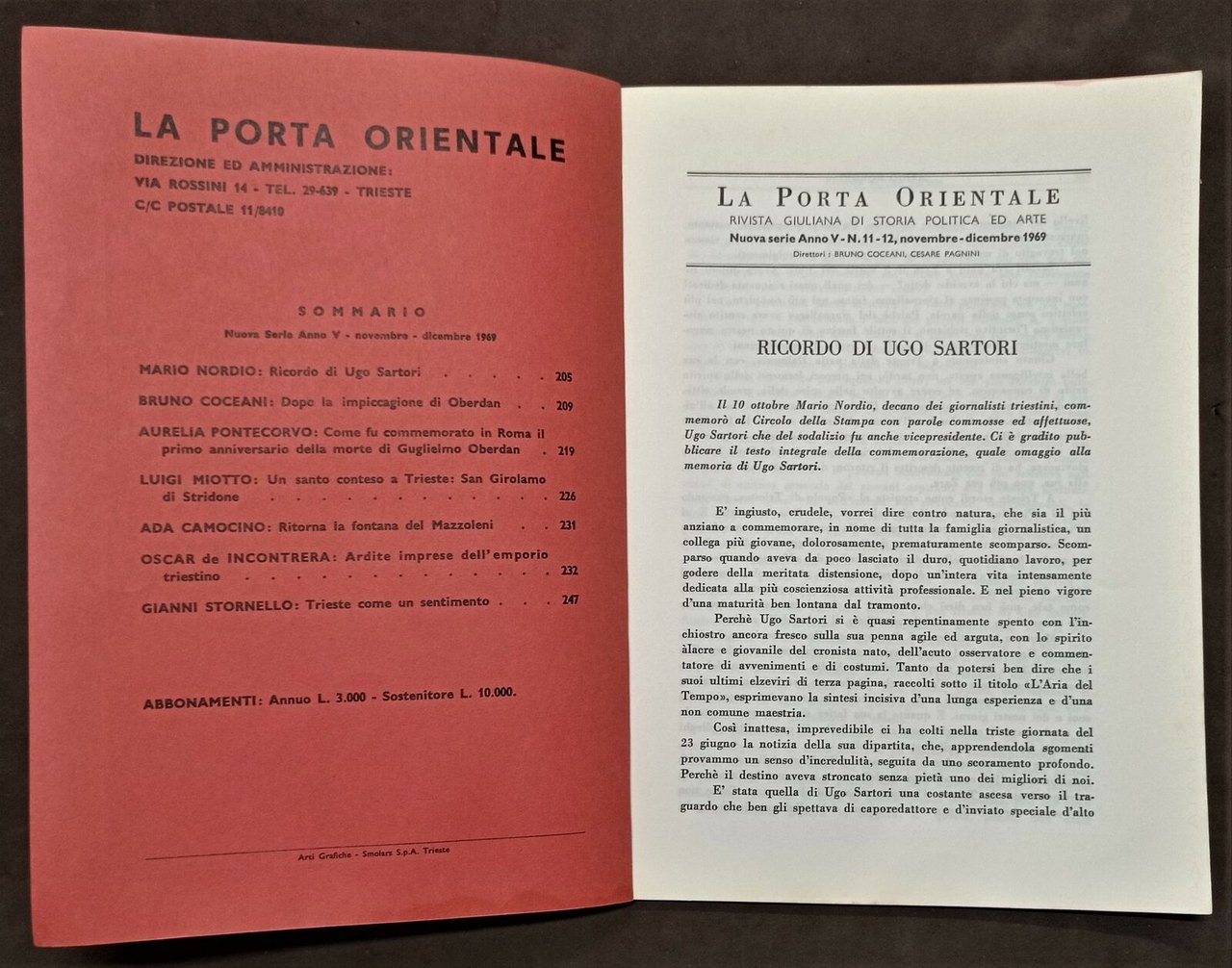 Rivista Giuliana di Storia Politica ed Arte - La Porta Orientale N. 11-12 - 1969