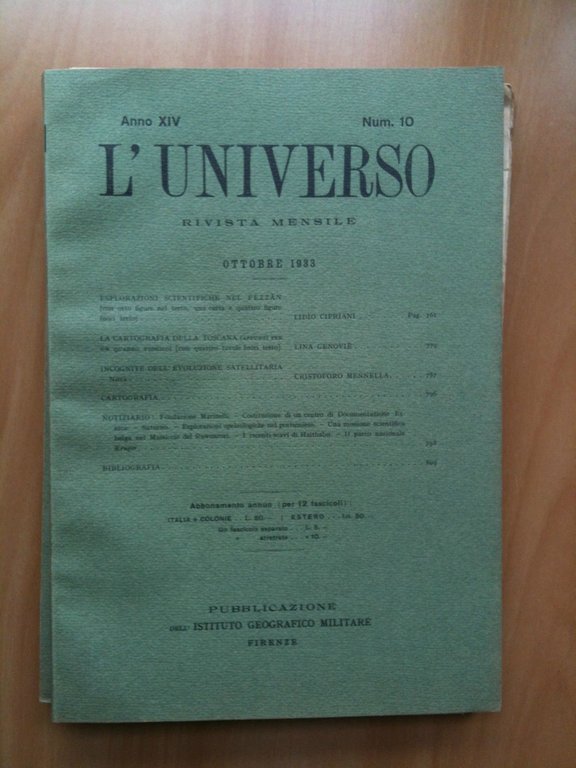Rivista L'Universo Anno XIV - n^ 10 Ottobre 1933